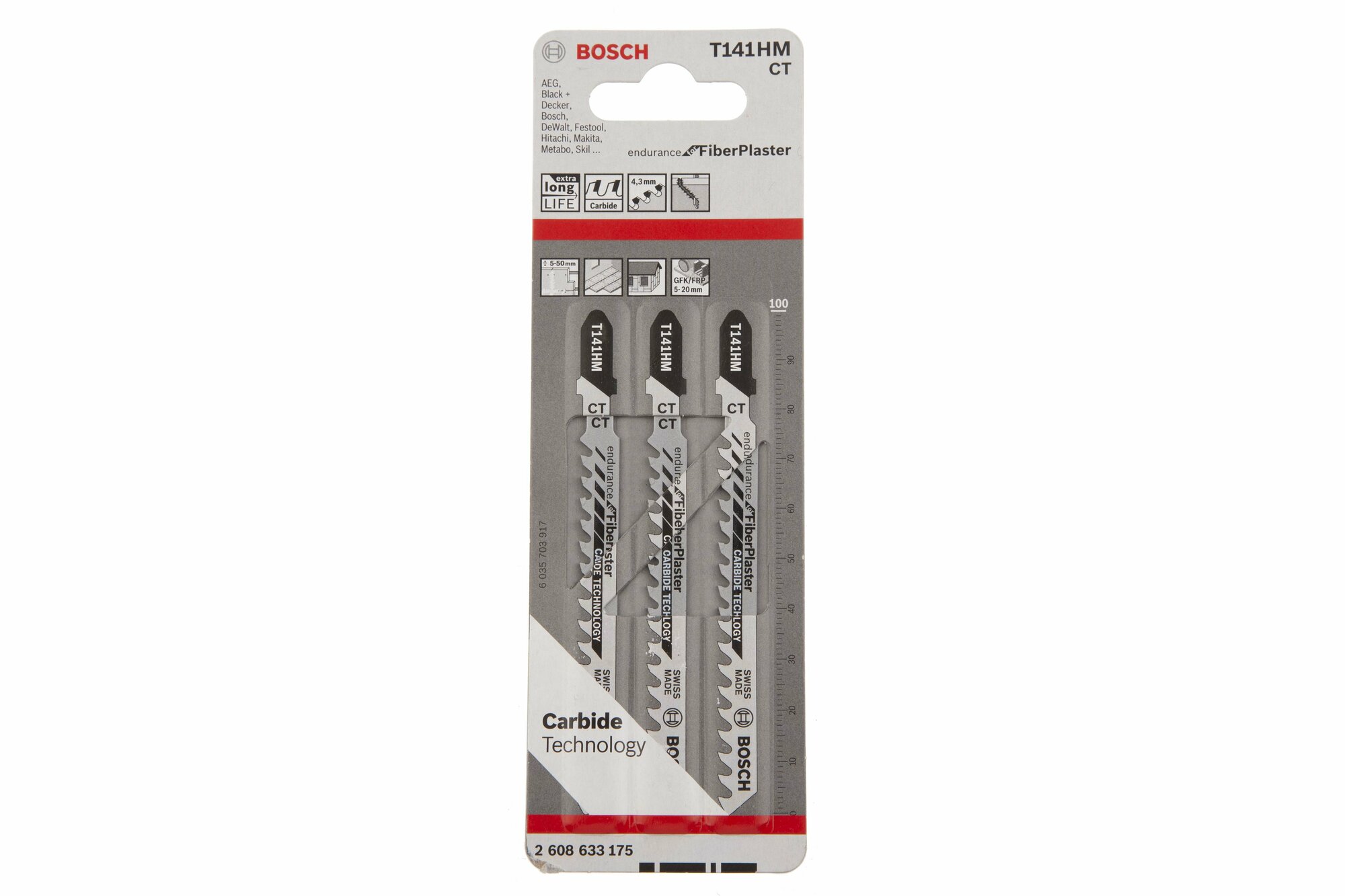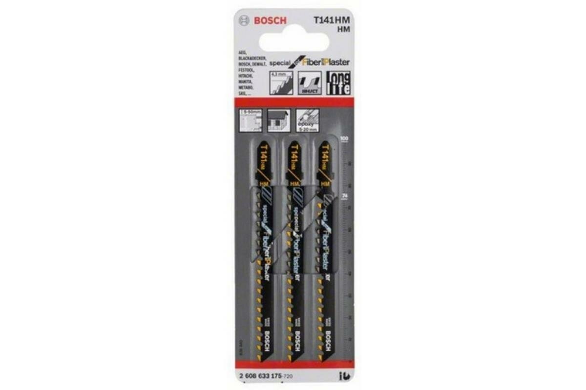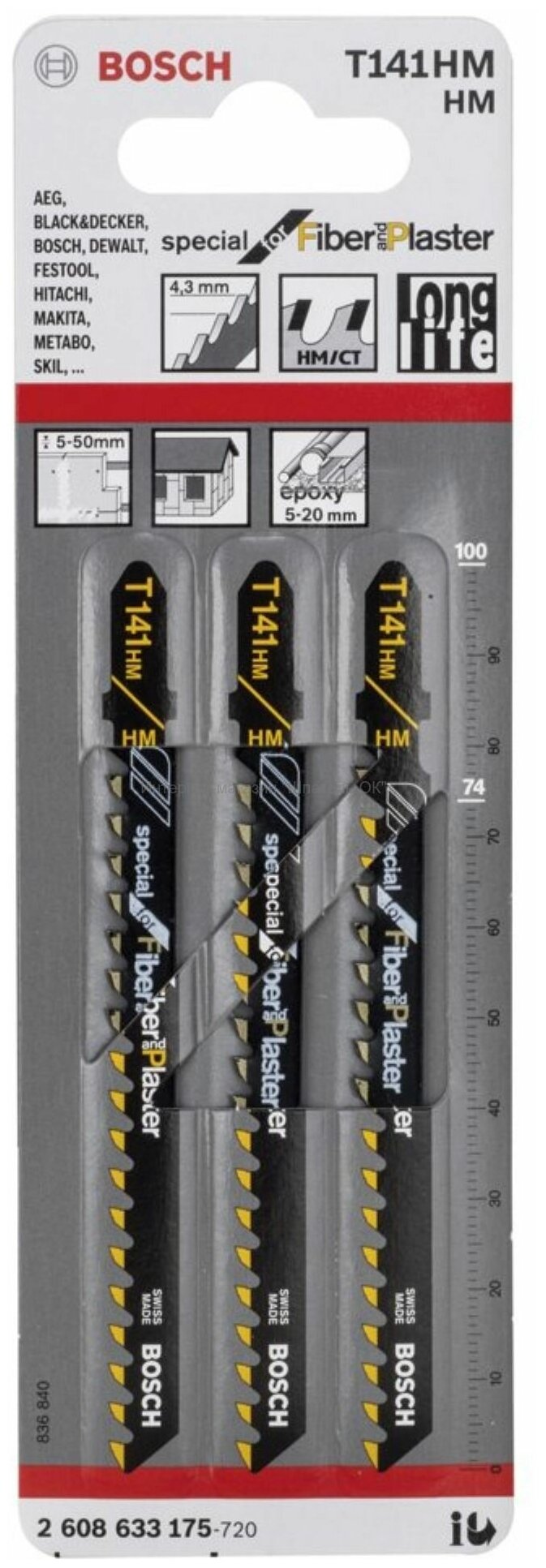 Пилки для лобзика Bosch Т 141 HM HM 2608633175 предназначены для работы со стеклопластиком, эпоксидными материалами, гипсокартоном, цементно-волокнистыми плитами. Отличаются повышенным сроком эксплуатации. В упаковке 3 штуки.