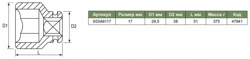 Ударная торцевая головка Jonnesway S03a6117