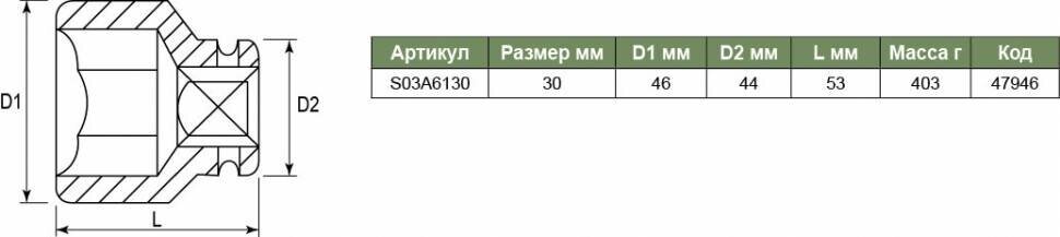 | Наименование модели | торцевая головка S03A6130 |