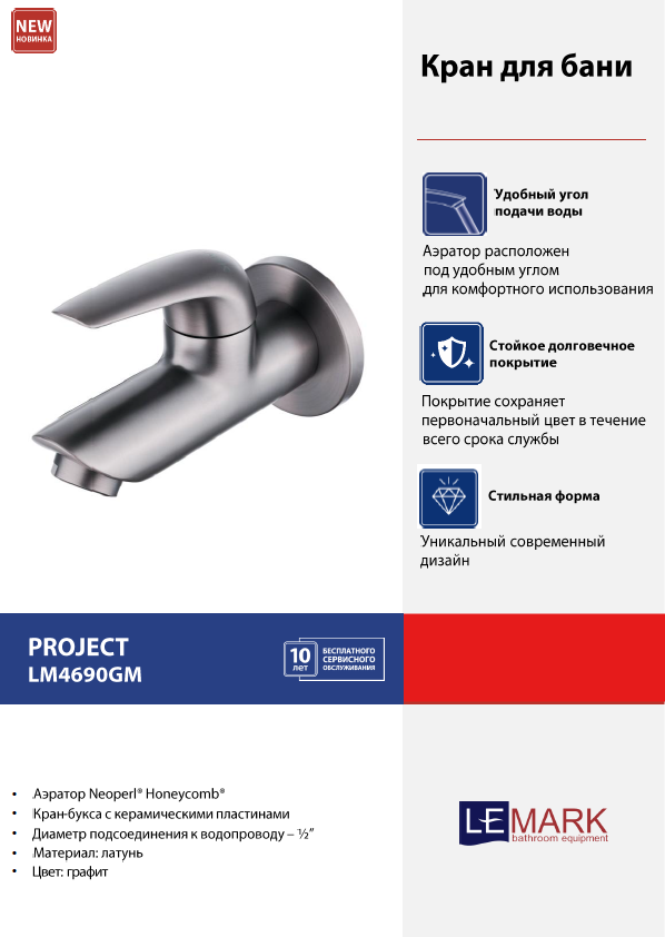 Сервис сравнения цен СкидкаГИД предлагает сравнить цены на товар «Кран Lemark Project для бани графит LM4690GM»