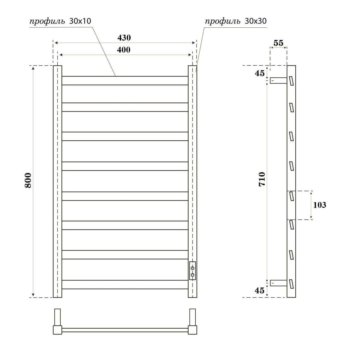 Электрический полотенцесушитель Point Атлант П8 40х80 диммер справа черный PN18848B (размер: 80x43 см)