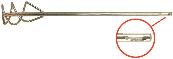 Хвостовик - SDS Plus, благодаря нему исключается проскальзывание миксера в патроне электроинструмента. Оцинкованное покрытие защищает инструмент от коррозии. Спиралевидная конструкция рабочей части обеспечивает перемешивание «тяжелых растворов» при меньших нагрузках на инструмент.