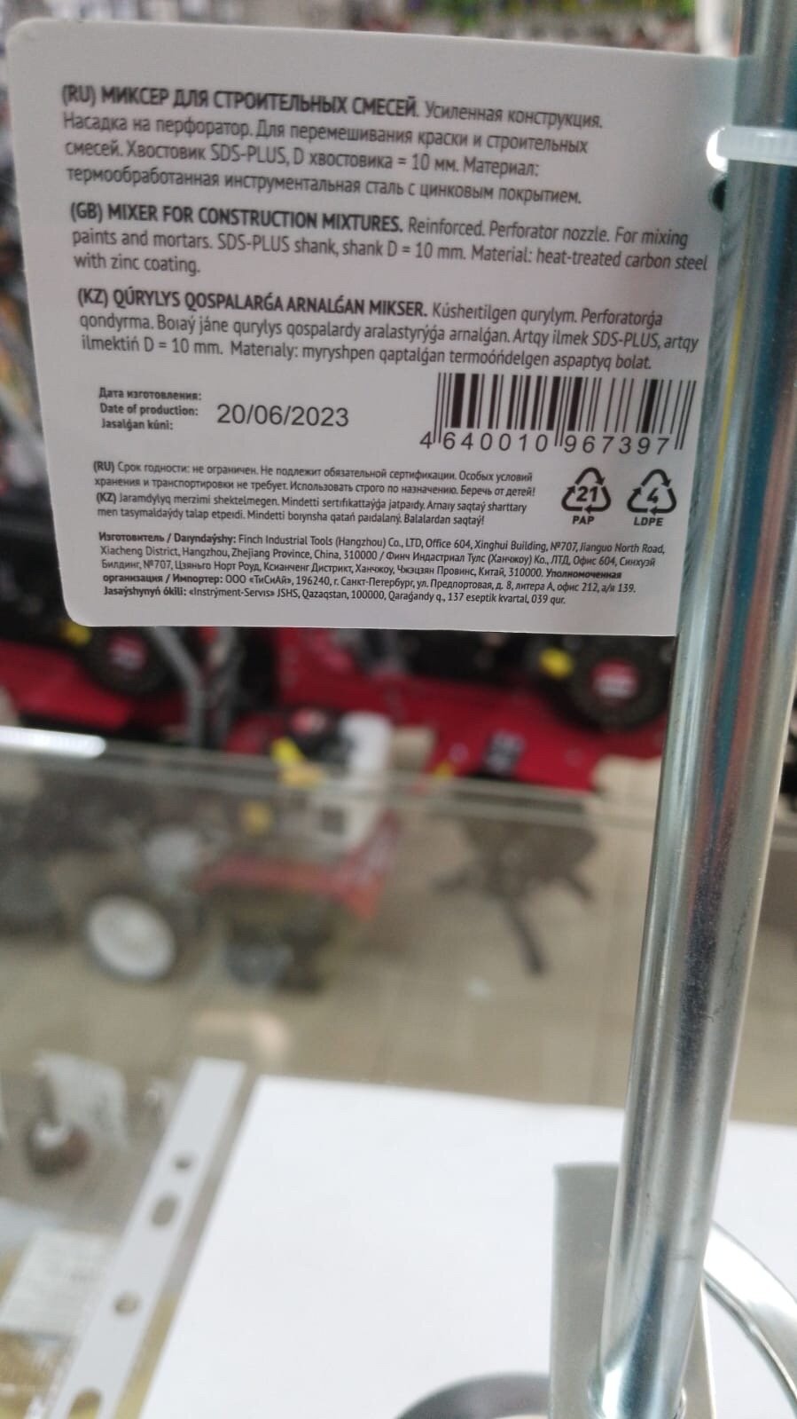 Используется в качестве насадки на перфоратор для перемешивания краски, строительных смесей. Изготовлен из инструментальной стали, хвостовик SDS+.