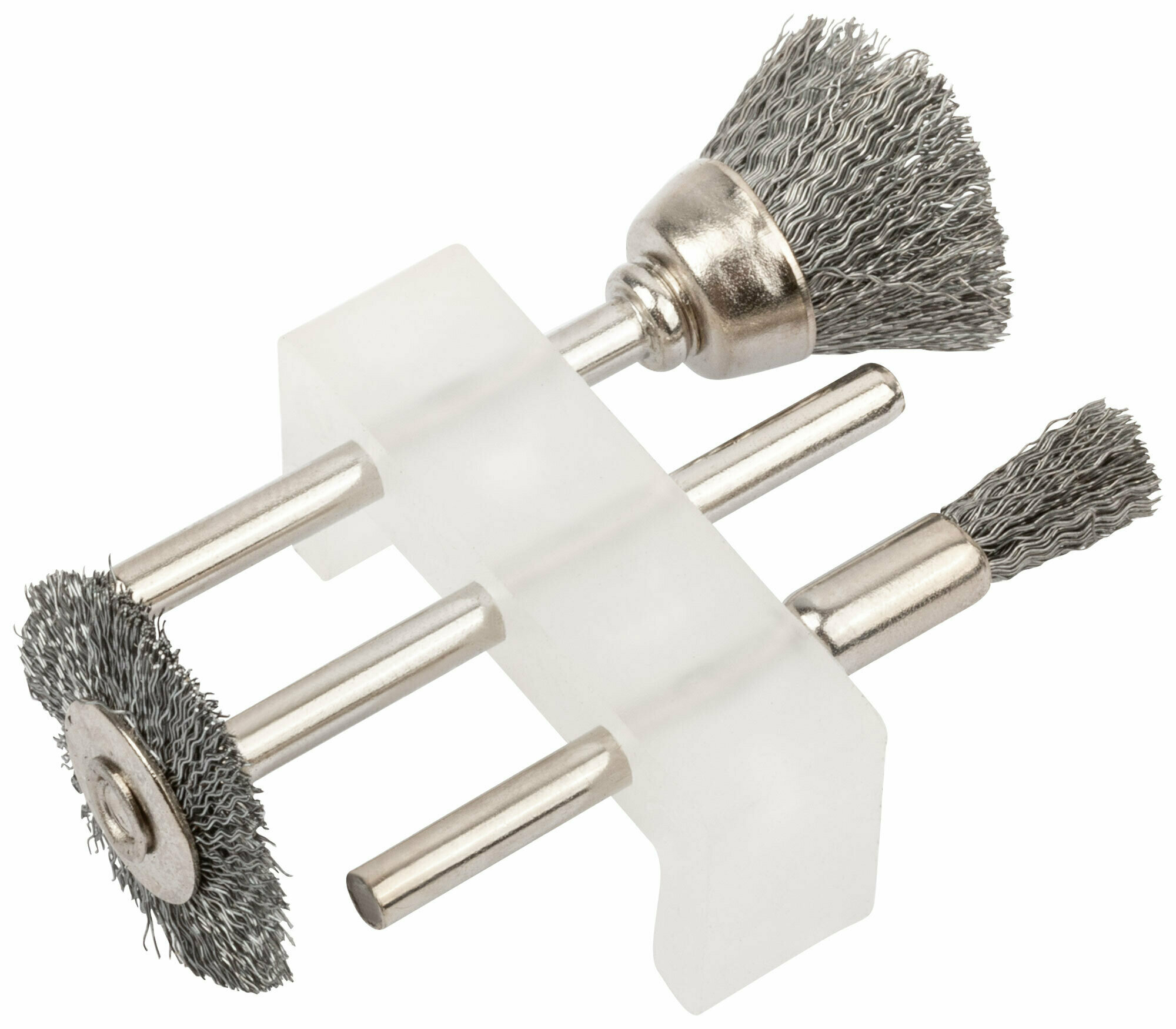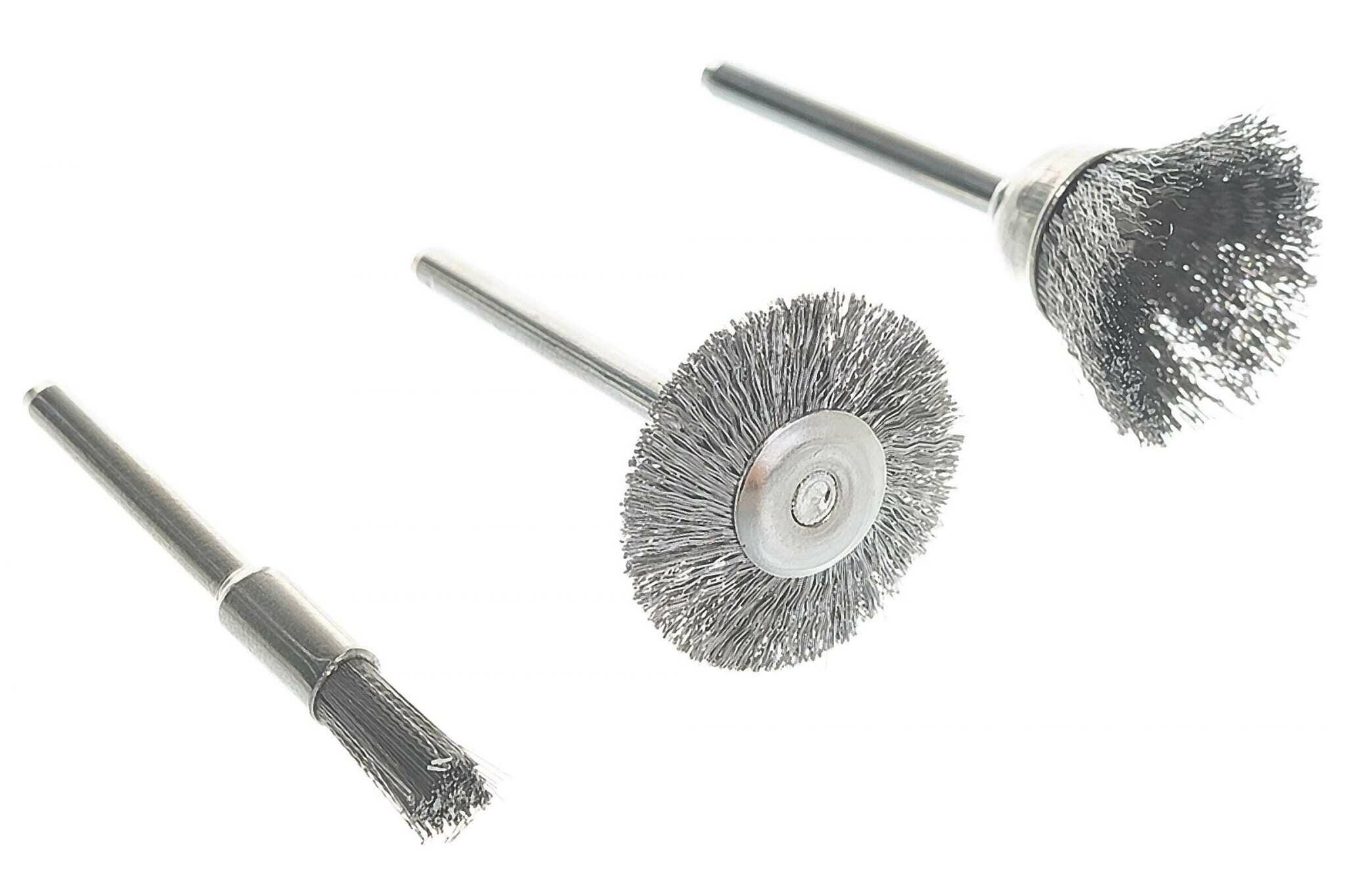 Для гравировальной машинки. В наборе 3 шт. Предназначена для удаления ржавчины и шлифования. Диаметр хвостовика 3.1 мм. Материал: проволока из нержавеющей стали. Упаковка: блистер.
