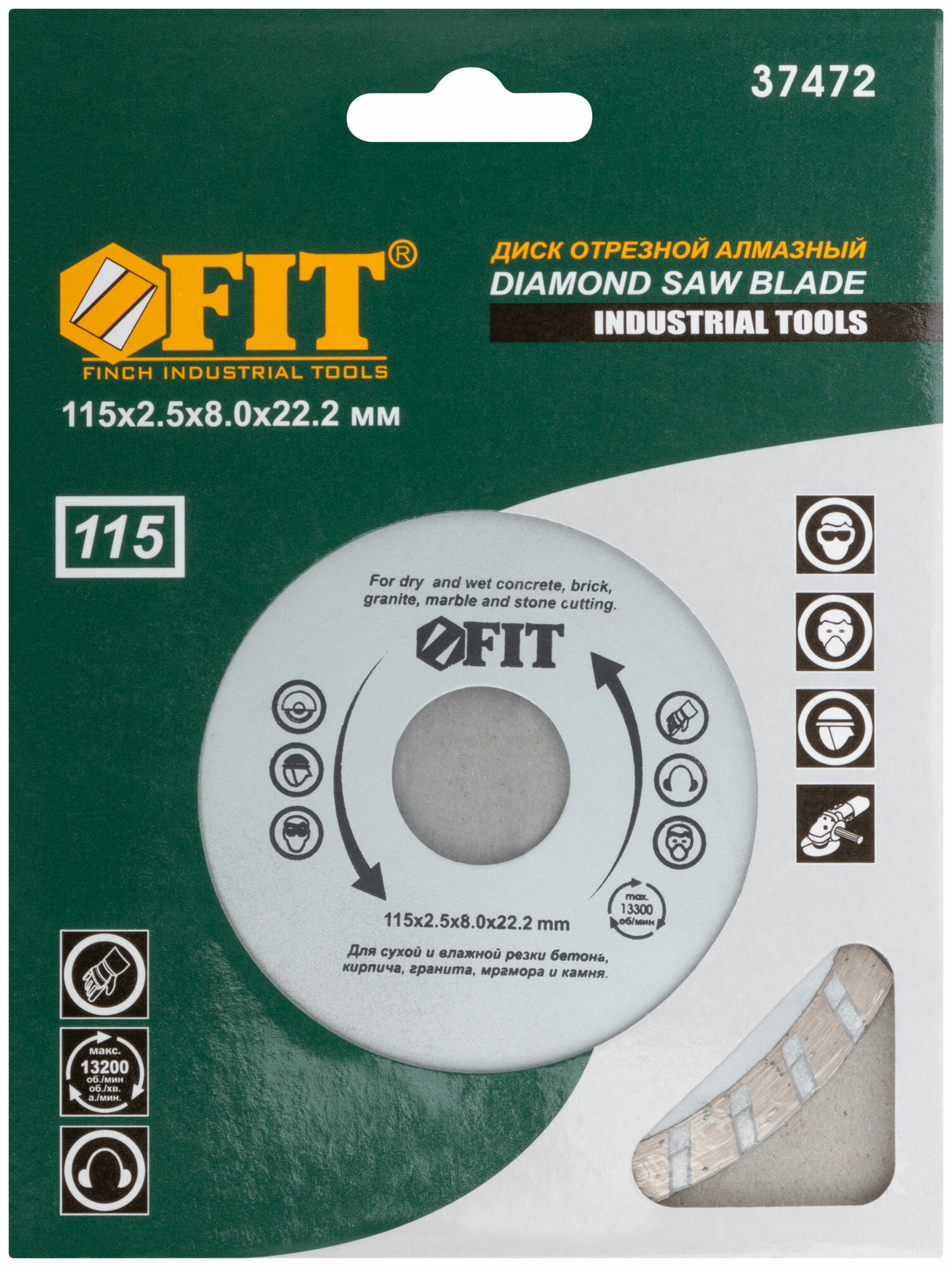 Алмазный отрезной диск для угловых шлифмашин FIT 37472