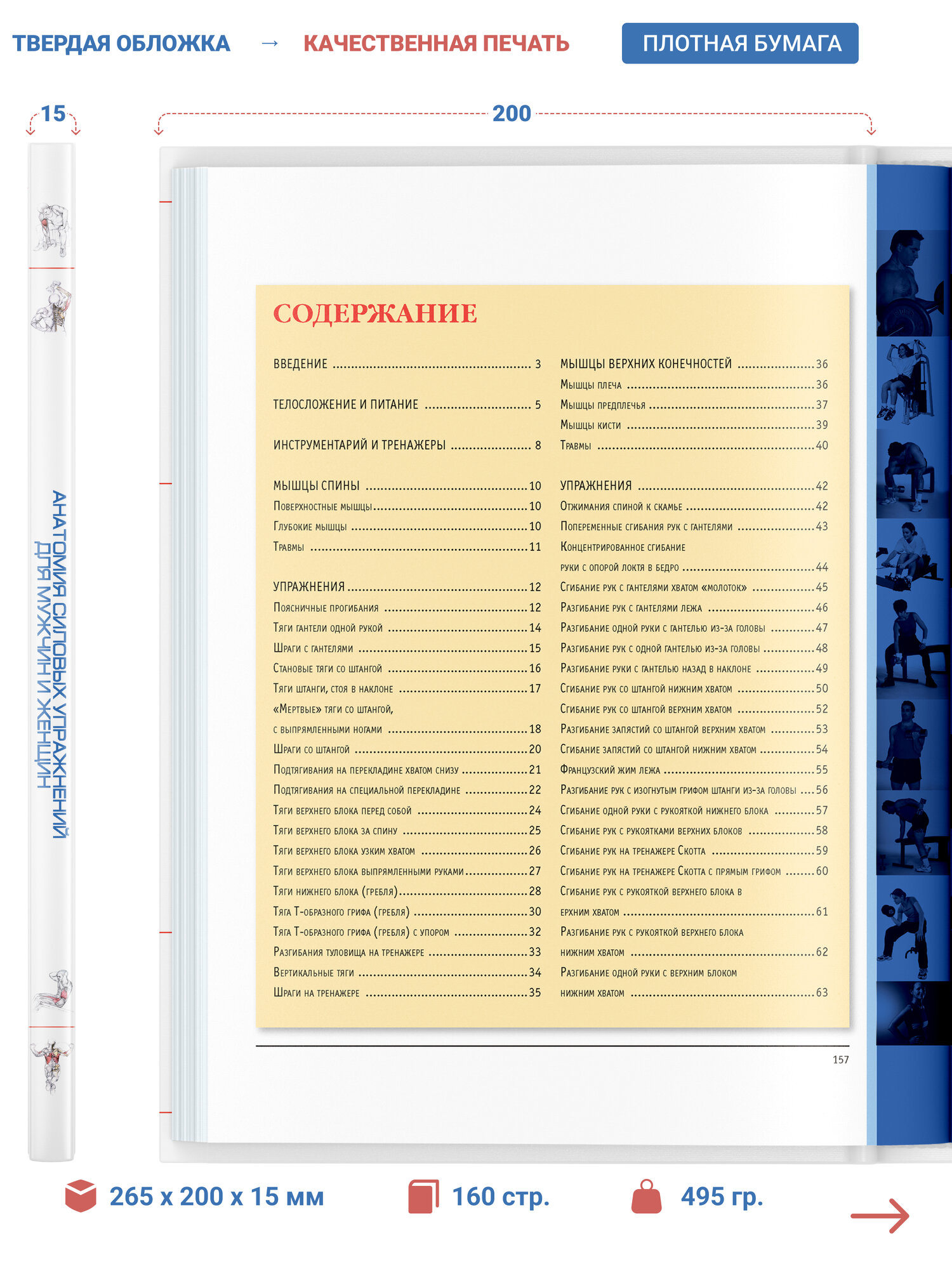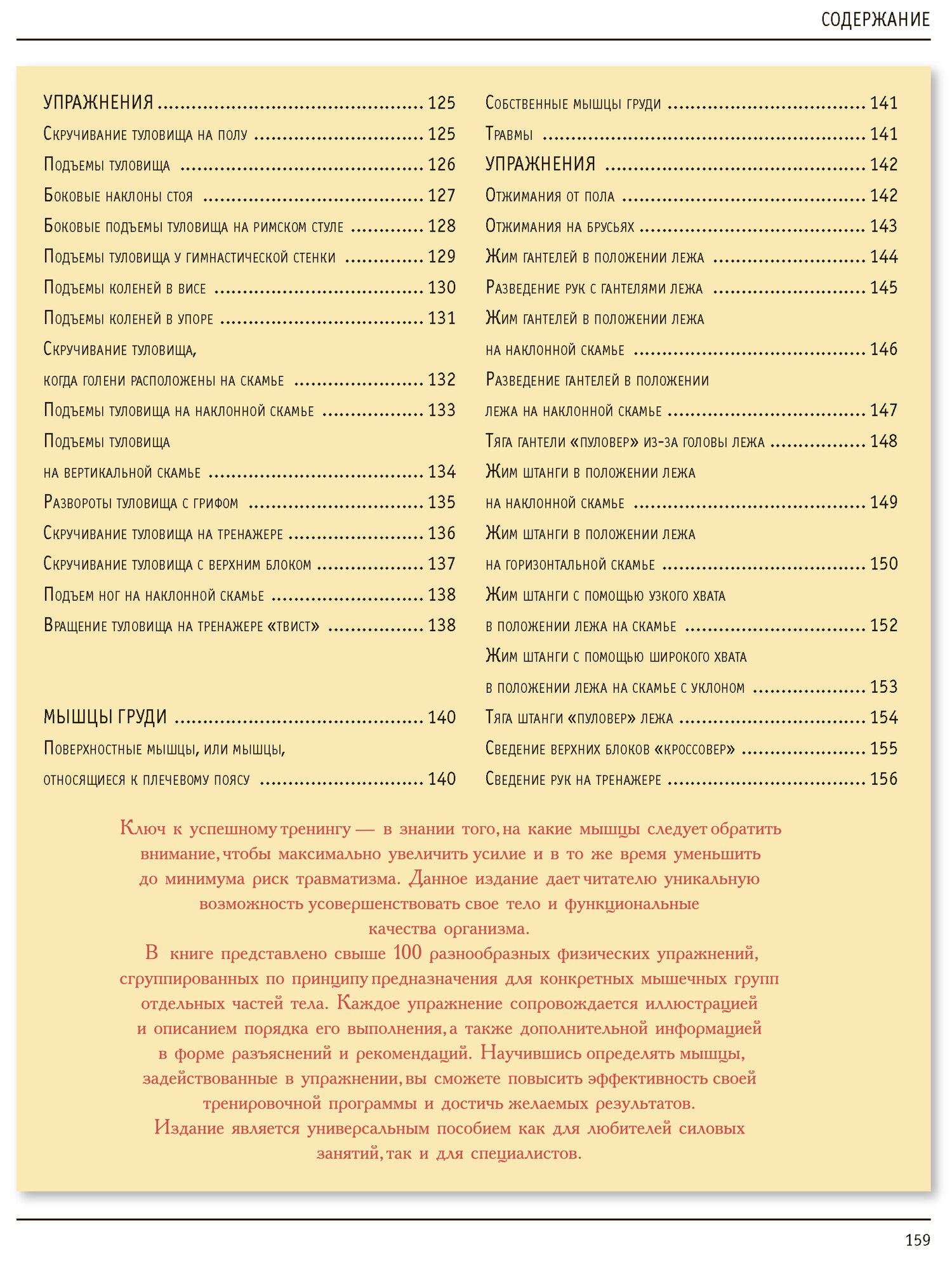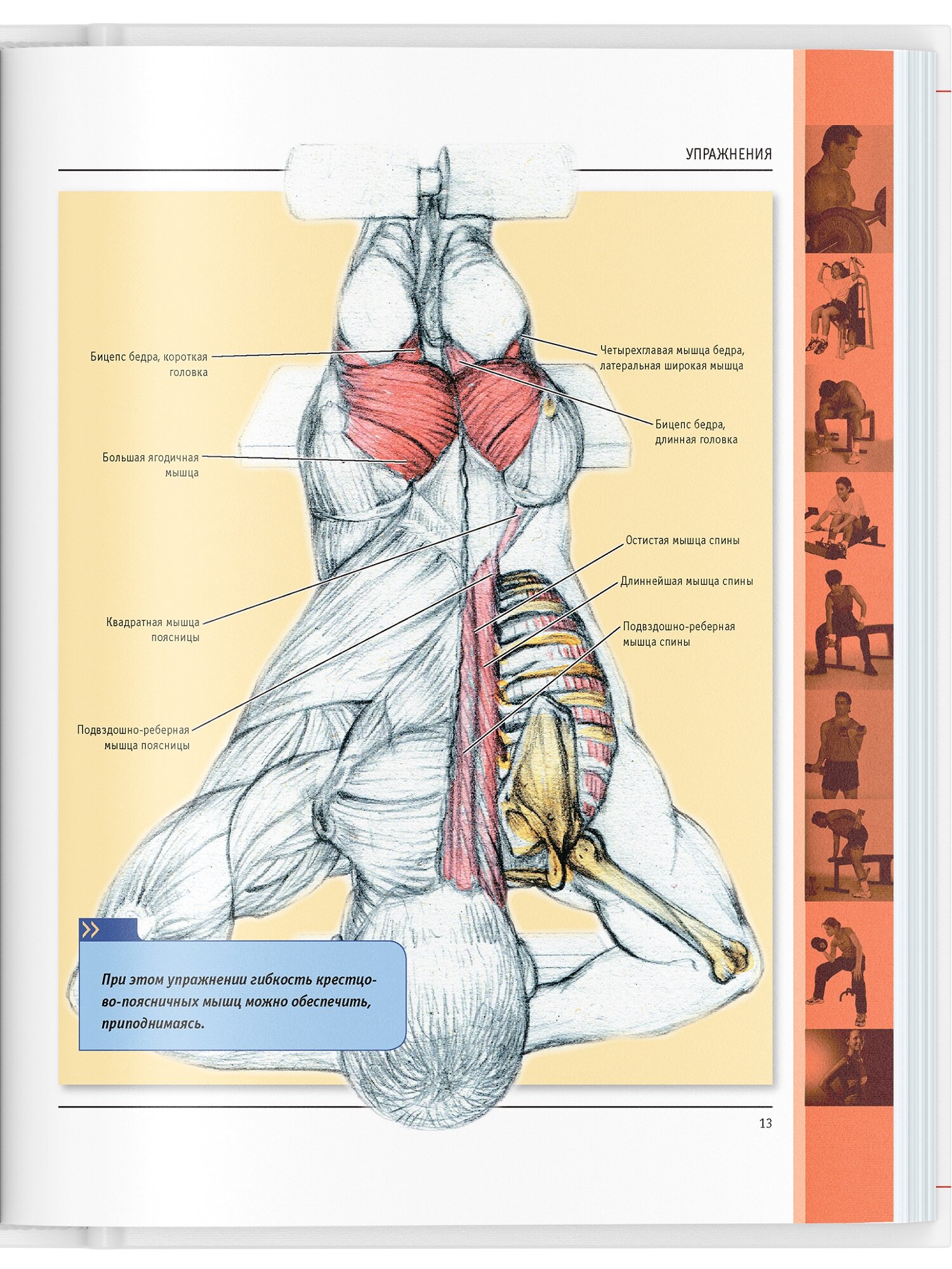 Ключ к успешному тренингу - в знании того, на какие мышцы следует обратить внимание, чтобы максимально увеличить усилие и в то же время уменьшить до минимума риск травматизма. Данное издание дает читателю уникальную возможность усовершенствовать свое тело и функциональные качества организма. .В книге представлено свыше 100 разнообразных физических упражнений, сгруппированных по принципу предназначения для конкретных мышечных групп отдельных частей тела. Каждое упражнение сопровождается иллюстрацией и описанием порядка его выполнения, а также дополнительной информацией в форме разъяснений и рекомендаций. Научившись определять мышцы, задействованные в упражнении, вы сможете повысить эффективность своей тренировочной программы и достичь желаемых результатов. . .Издание является универсальным пособием как для любителей силовых занятий, так и для специалистов. . . .