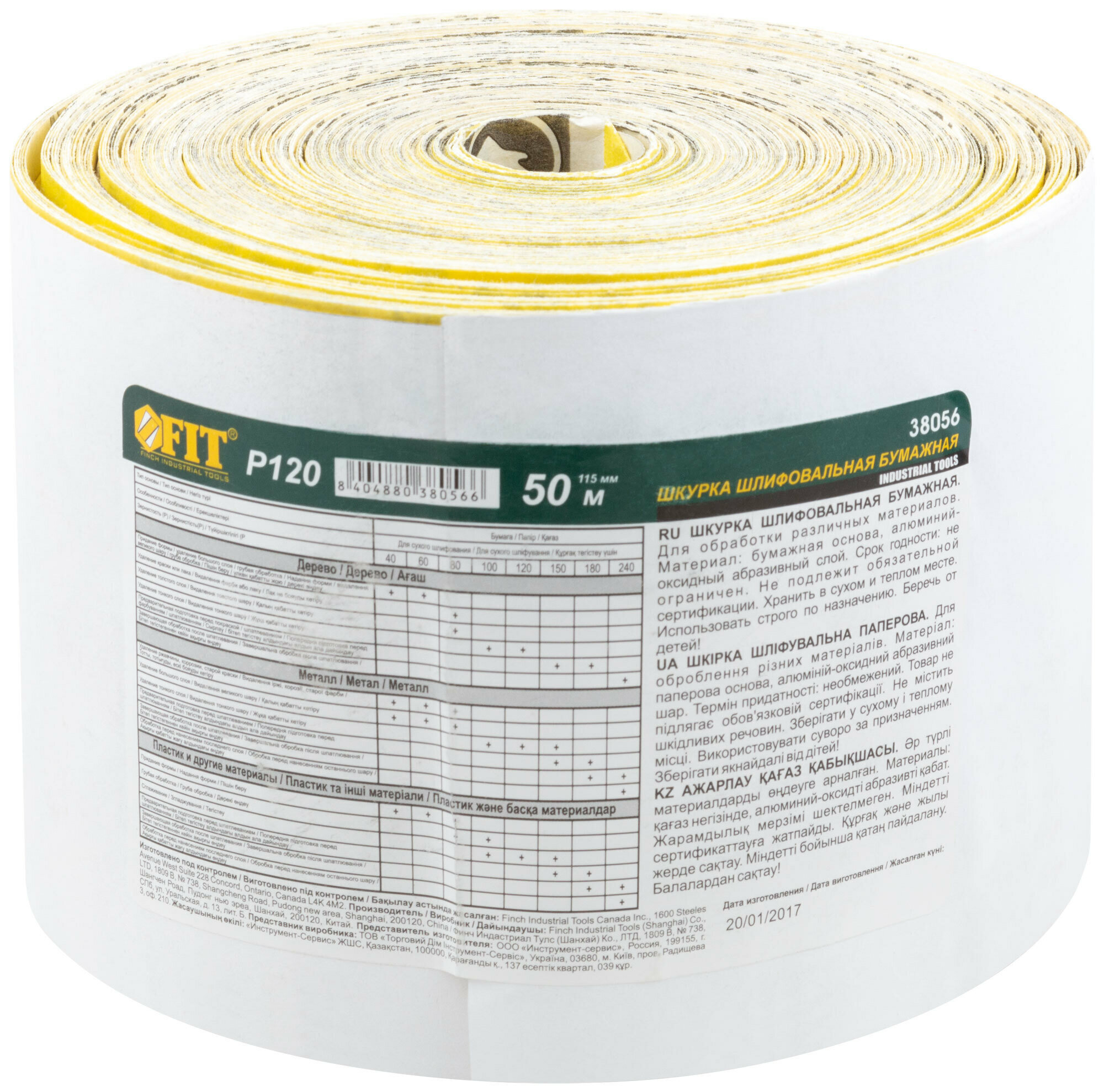 Шкурка шлифовальная в рулоне Fit 38056