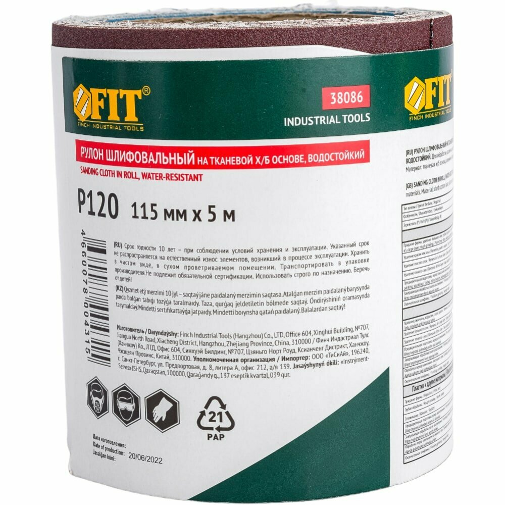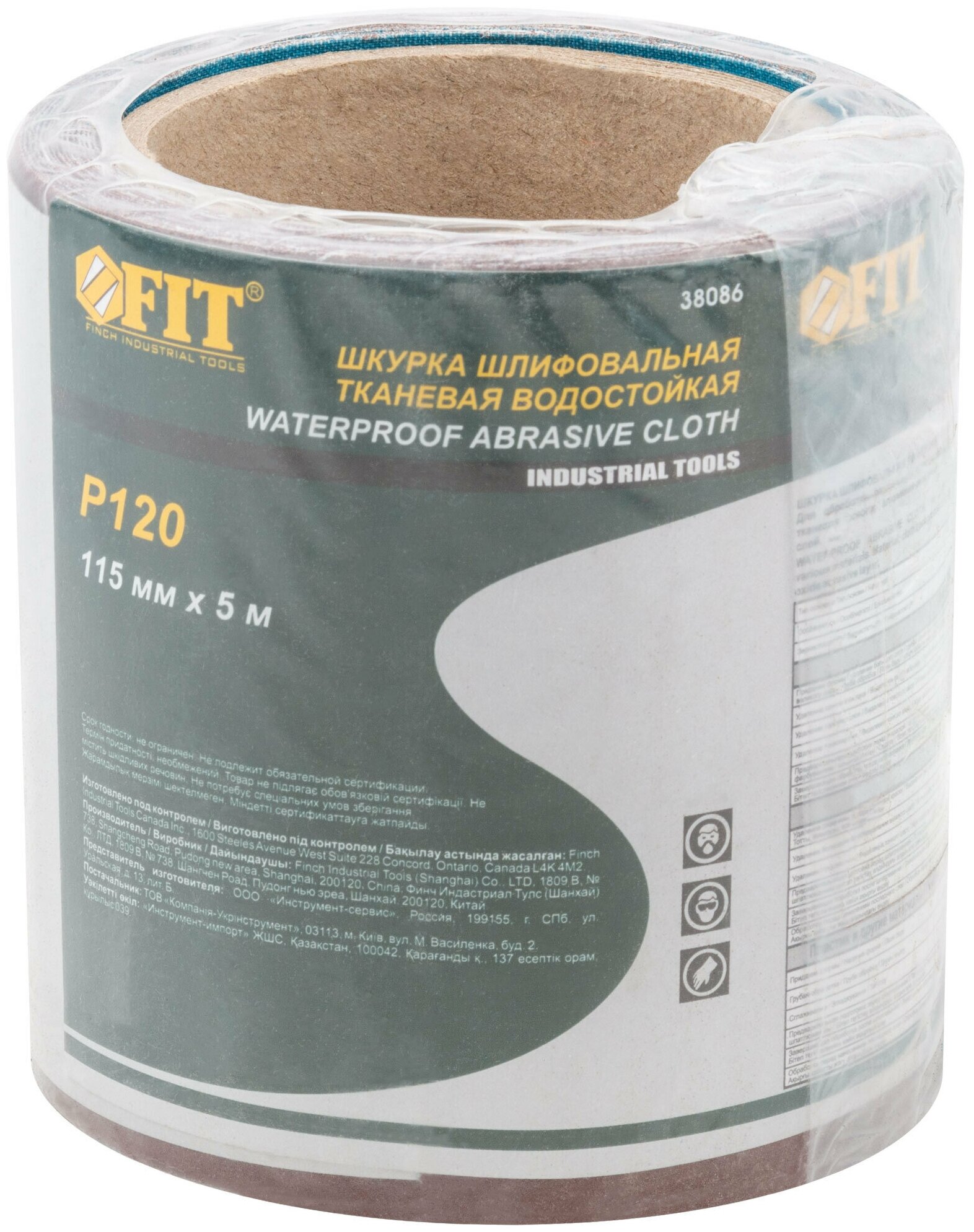 Бумага наждачная в рулонах Р120 FIT (на тканевой основе, алюминий-оксидная, 115мм х 5м)