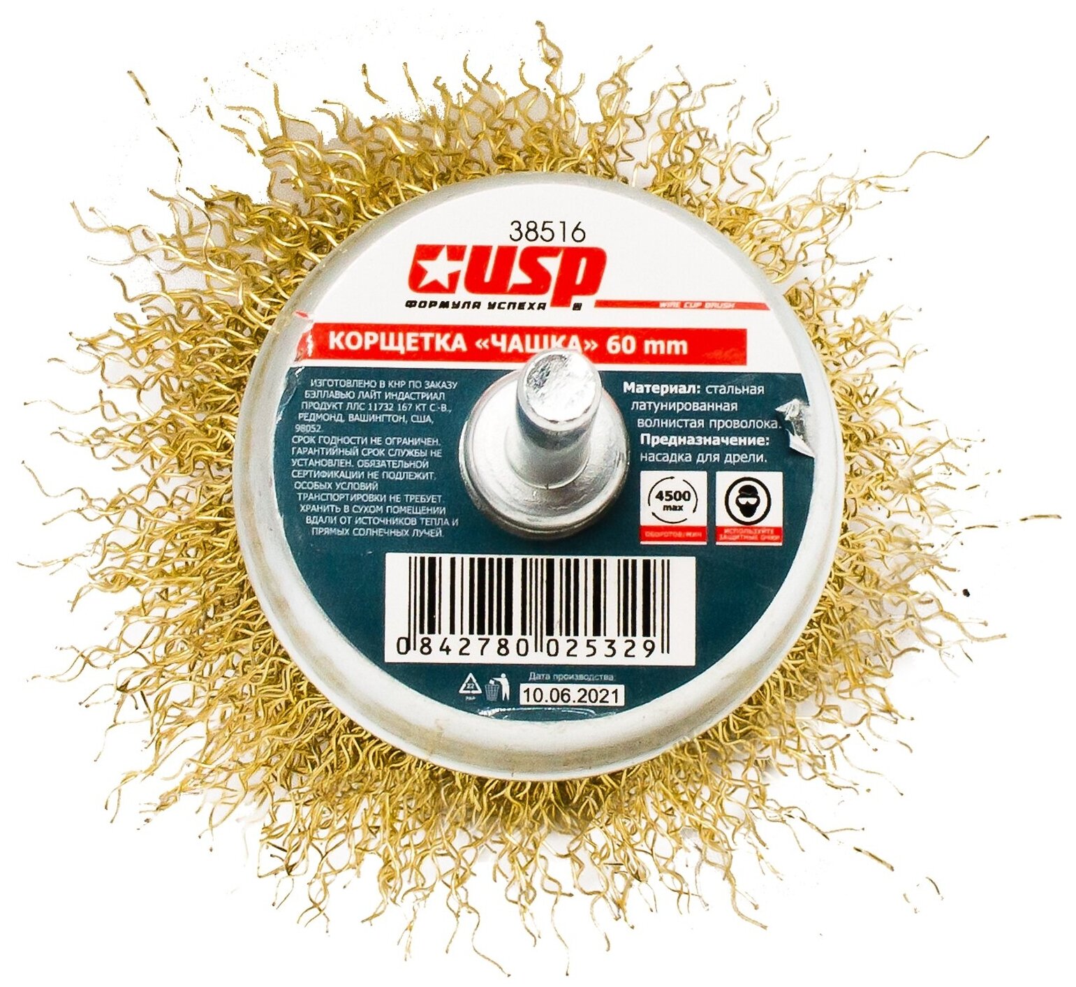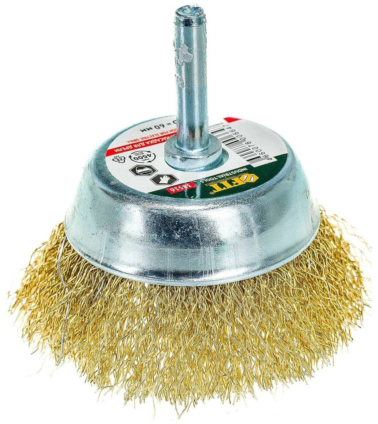 Корщетка-чашка 60 мм со шпилькой FIT (стальная волнистая латунированная проволока)