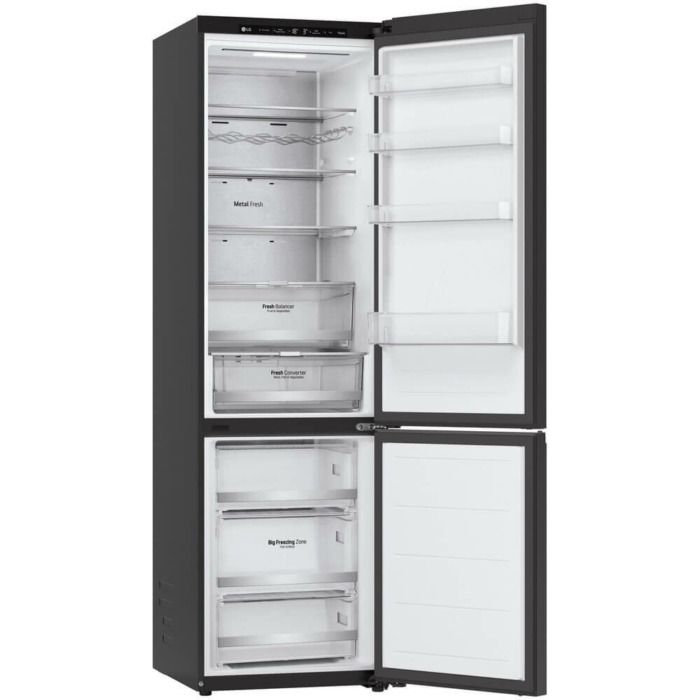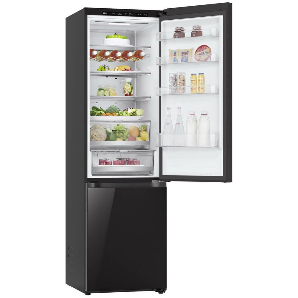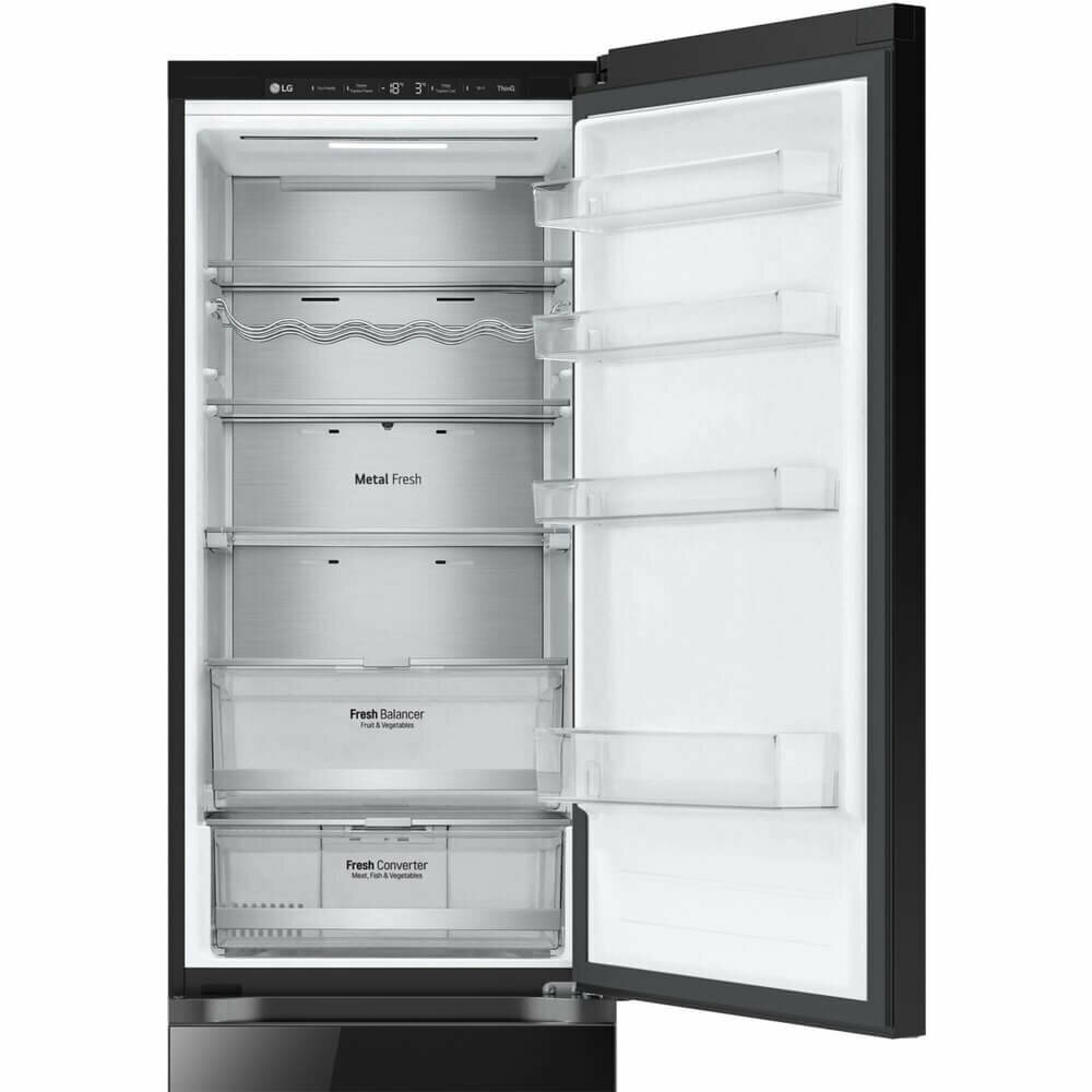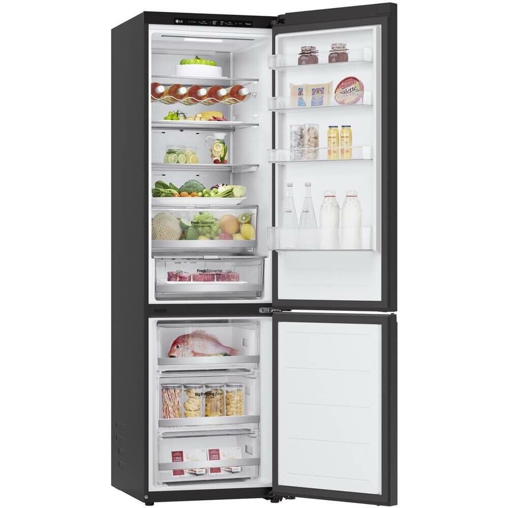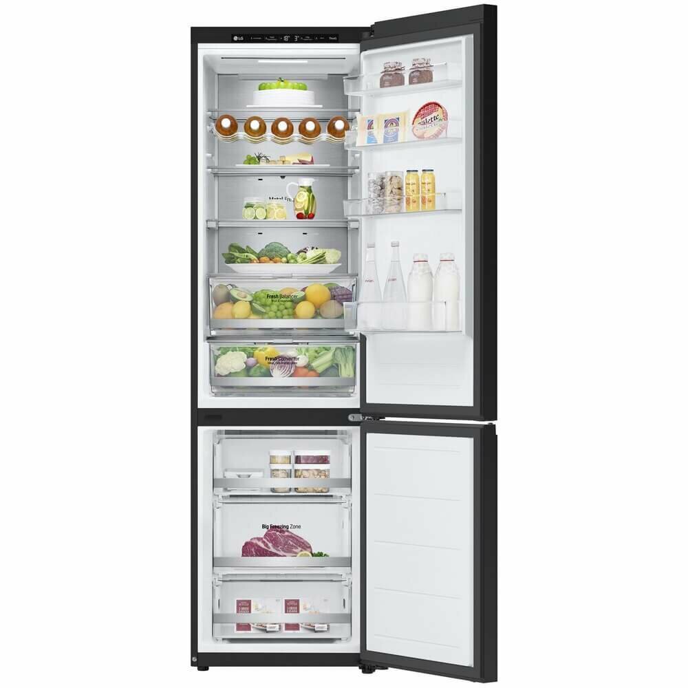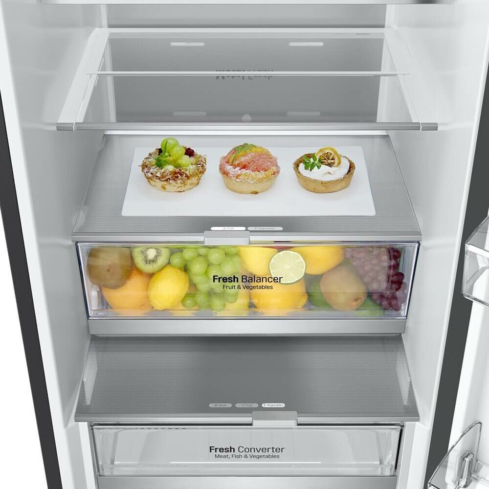 Холодильник с морозильником LG GC-B509QK9M поддерживает технологию Total No Frost, которая запускает принудительный обдув холодным воздухом и предупреждает появление ледяной корки на стенках. Отделение с регулируемой температурой и влажностью служит для сохранения свежести овощей, фруктов, ягод, зелени. Доступ к настройкам производится через приложение LG ThinQ.Функциональный дисплей вынесен на внутреннюю стенку LG GC-B509QK9M. Выполненные из стекла полки выдерживают нагрузку без риска появления трещин. Инверторный компрессор сокращает уровень шума и затраты на энергоснабжение. Нулевой зазор позволяет открыть дверцу на 90 градусов и полностью выдвинуть нижние ящики.