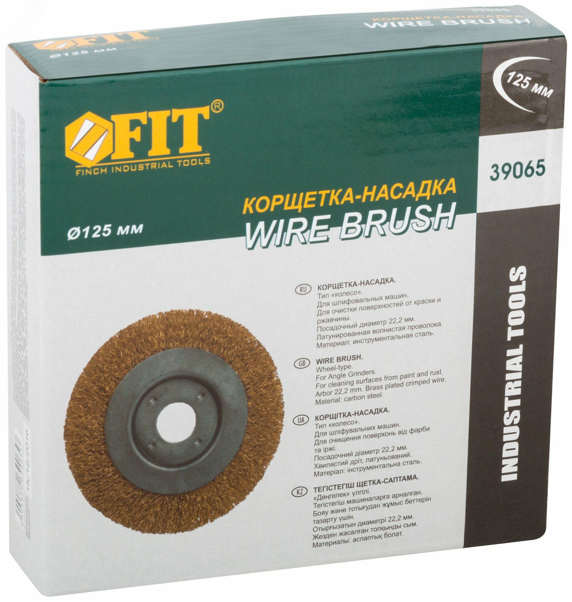 Корщетка-колесо FIT , посадочный диаметр 22,2 мм, стальная латунированная волнистая проволока 125 мм