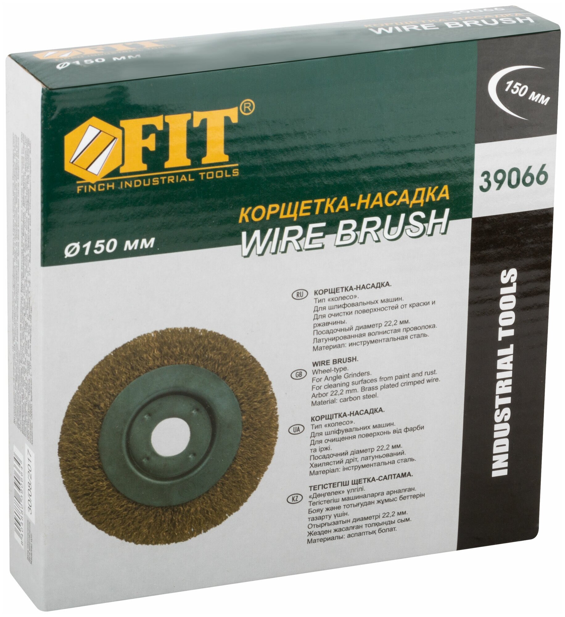 Корщетка-колесо FIT , посадочный диаметр 22,2 мм, стальная латунированная волнистая проволока 150 мм