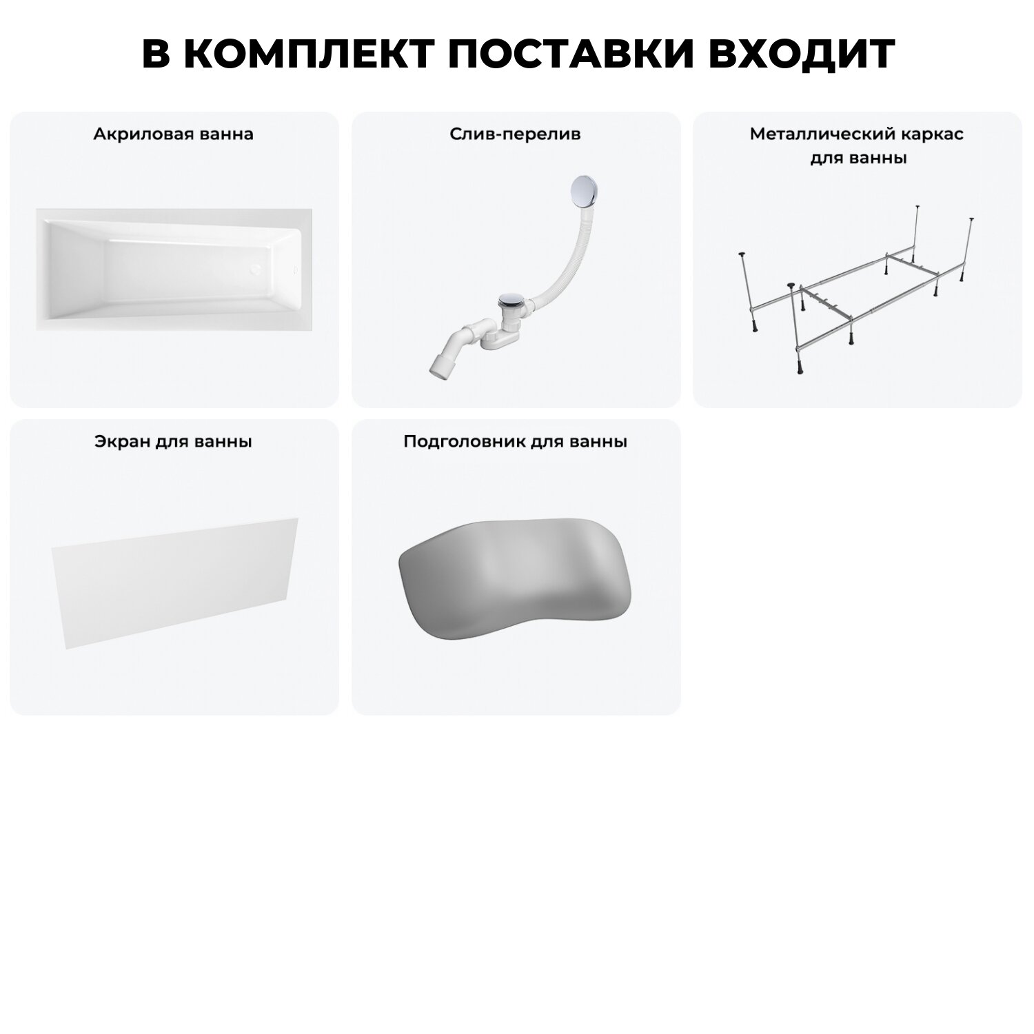 | Дополнительная информация | в наборе 5 в 1:акриловая ванна, каркас, экран, слив-перелив, подголовник |