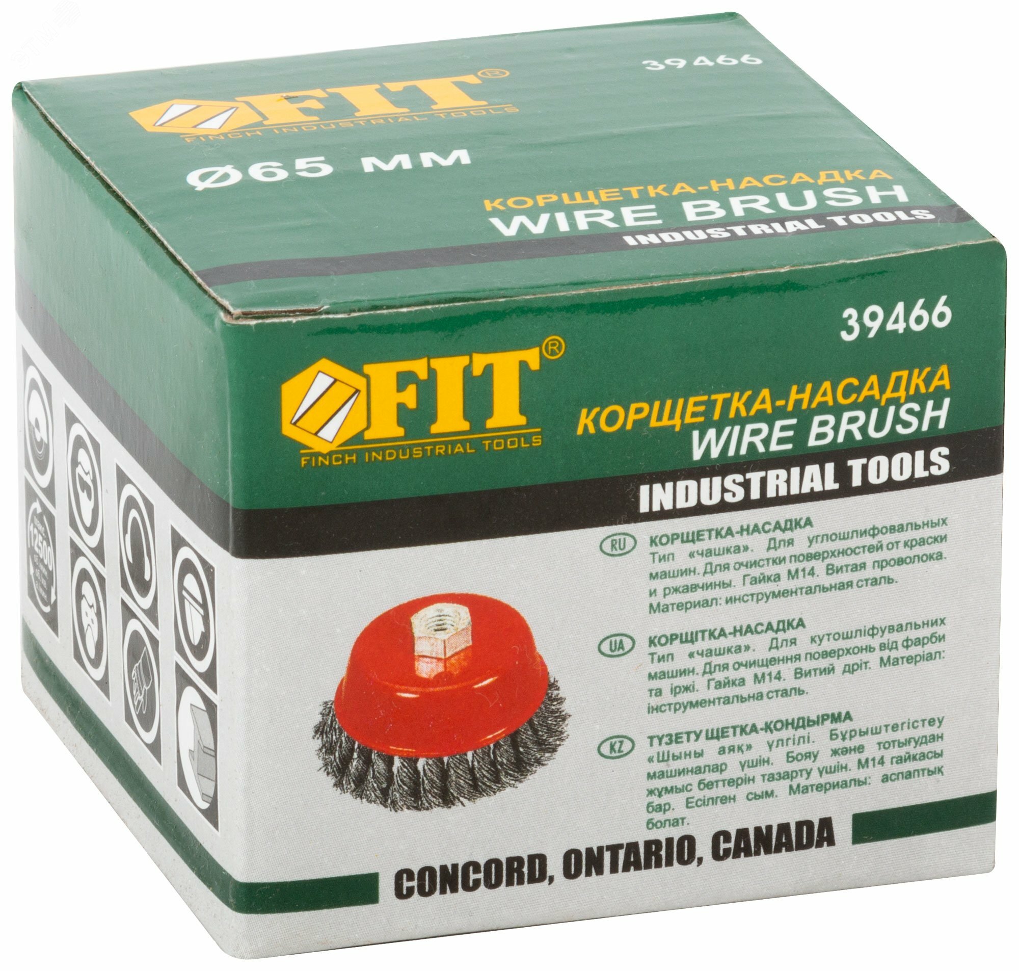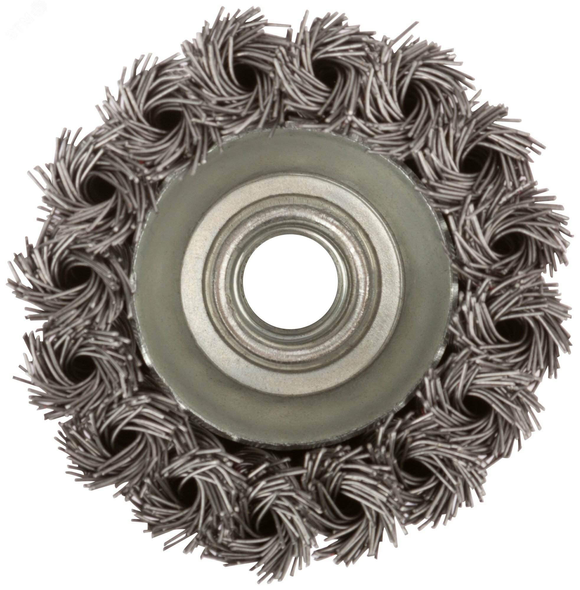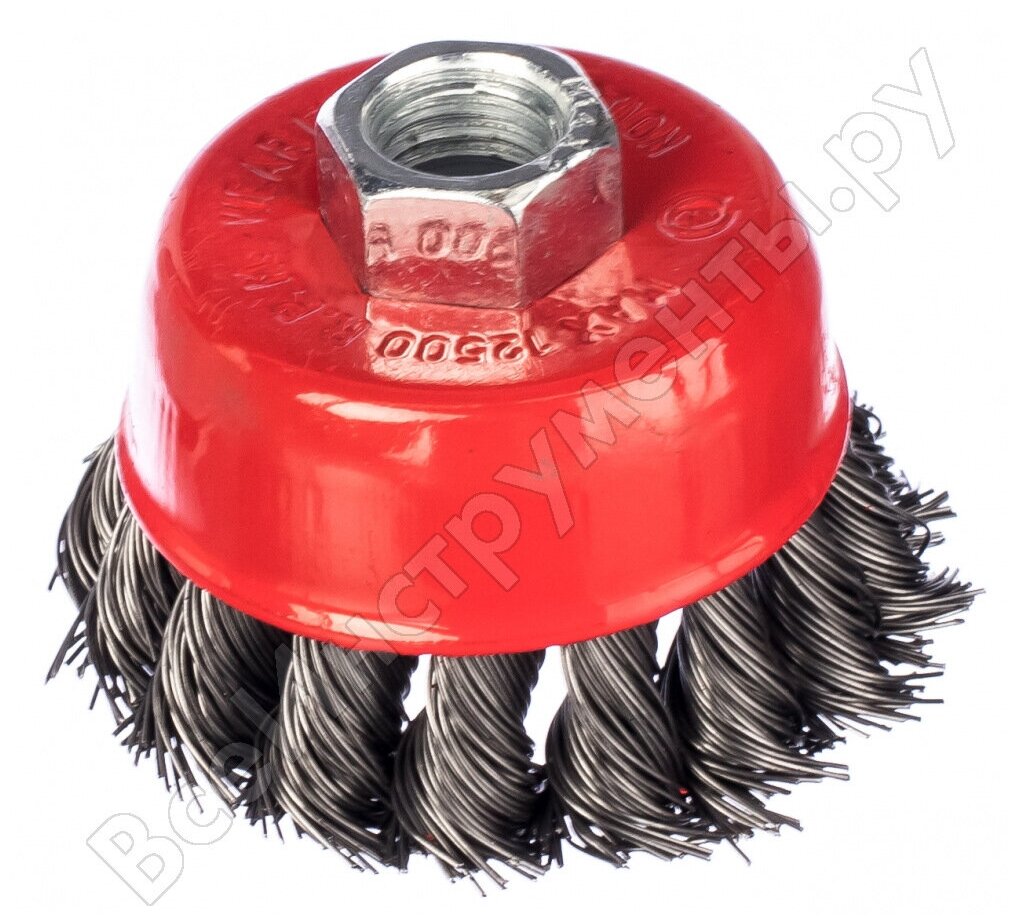 Корщетка-насадка, тип "чашка". Гайка М14. Для шлифовальных и отрезных машин. Витая стальная проволока. Упаковка: картонная коробка.