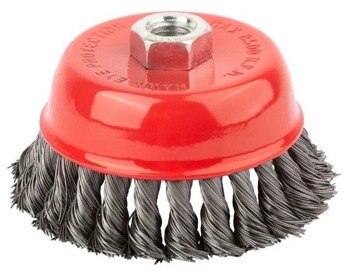 Тип «чашка», гайка М14. Для шлифовальных и отрезных машин. Витая стальная проволока. Упаковка: картонная коробка.