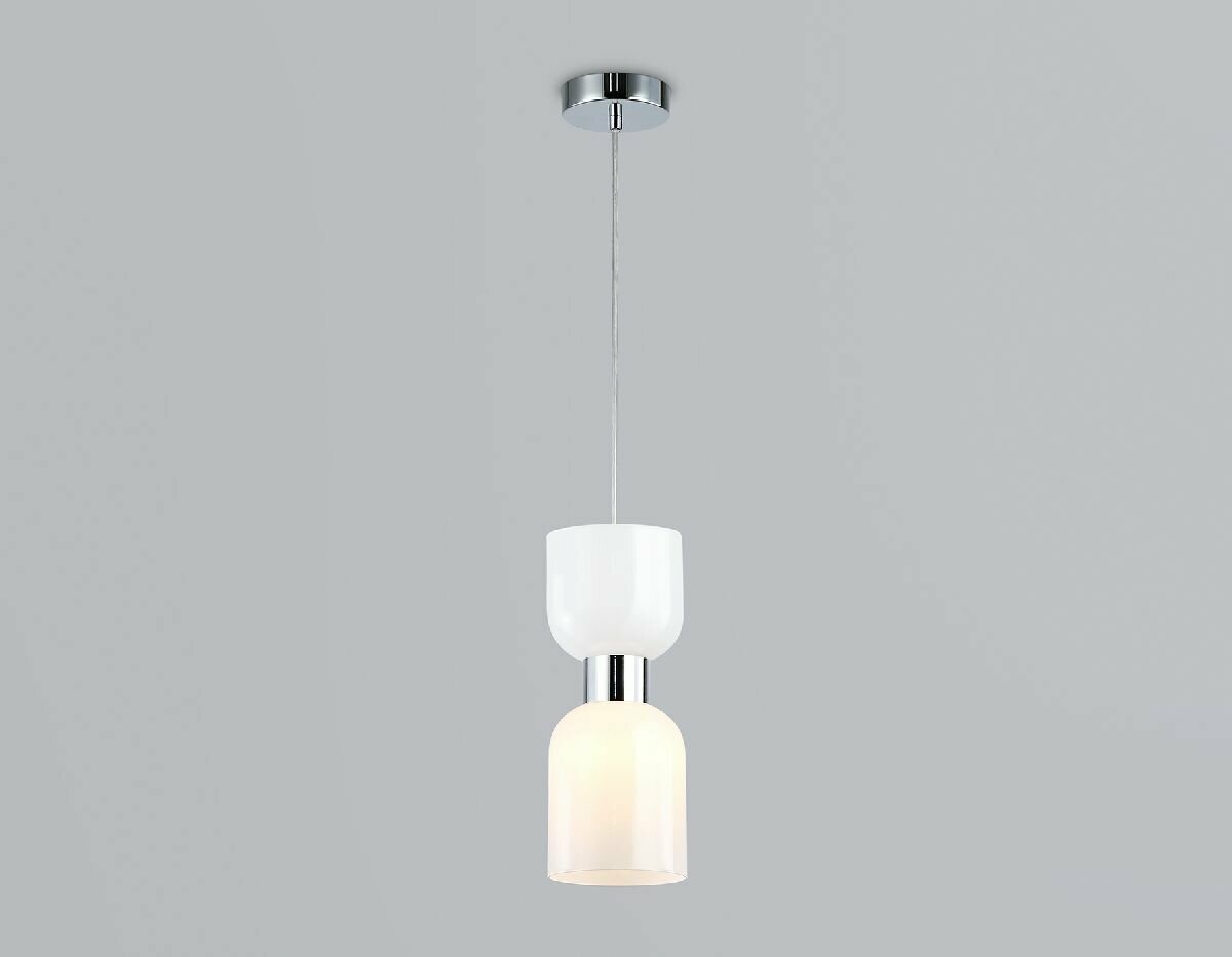 Подвесной светильник Ambrella Light Heigh Light HIGH LIGHT _AMB – стильное и функциональное решение для освещения вашего дома.Светильник выполнен в современном стиле и отличается интересным дизайном, который может стать главным акцентом в интерьере. Арматура светильника изготовлена из металла с хромированным покрытием, а плафон – из стекла белого цвета.