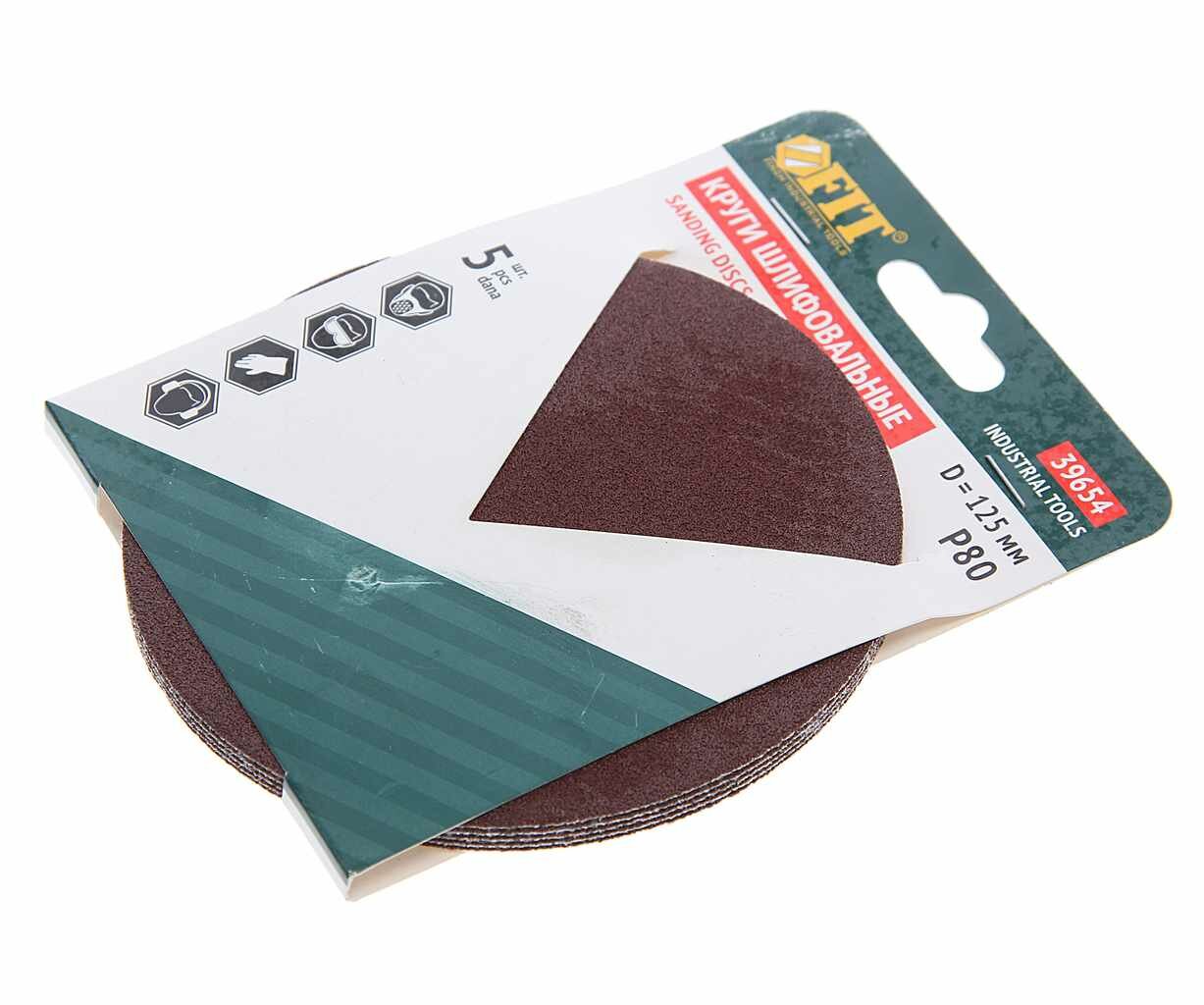 Круги шлифовальные FIT сплошные (липучка), алюминий-оксидные, 125 мм, 5 шт.