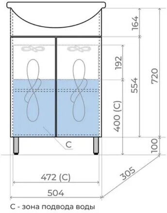 - Размеры тумбы (ШхВхГ): 504х720х305 мм.
