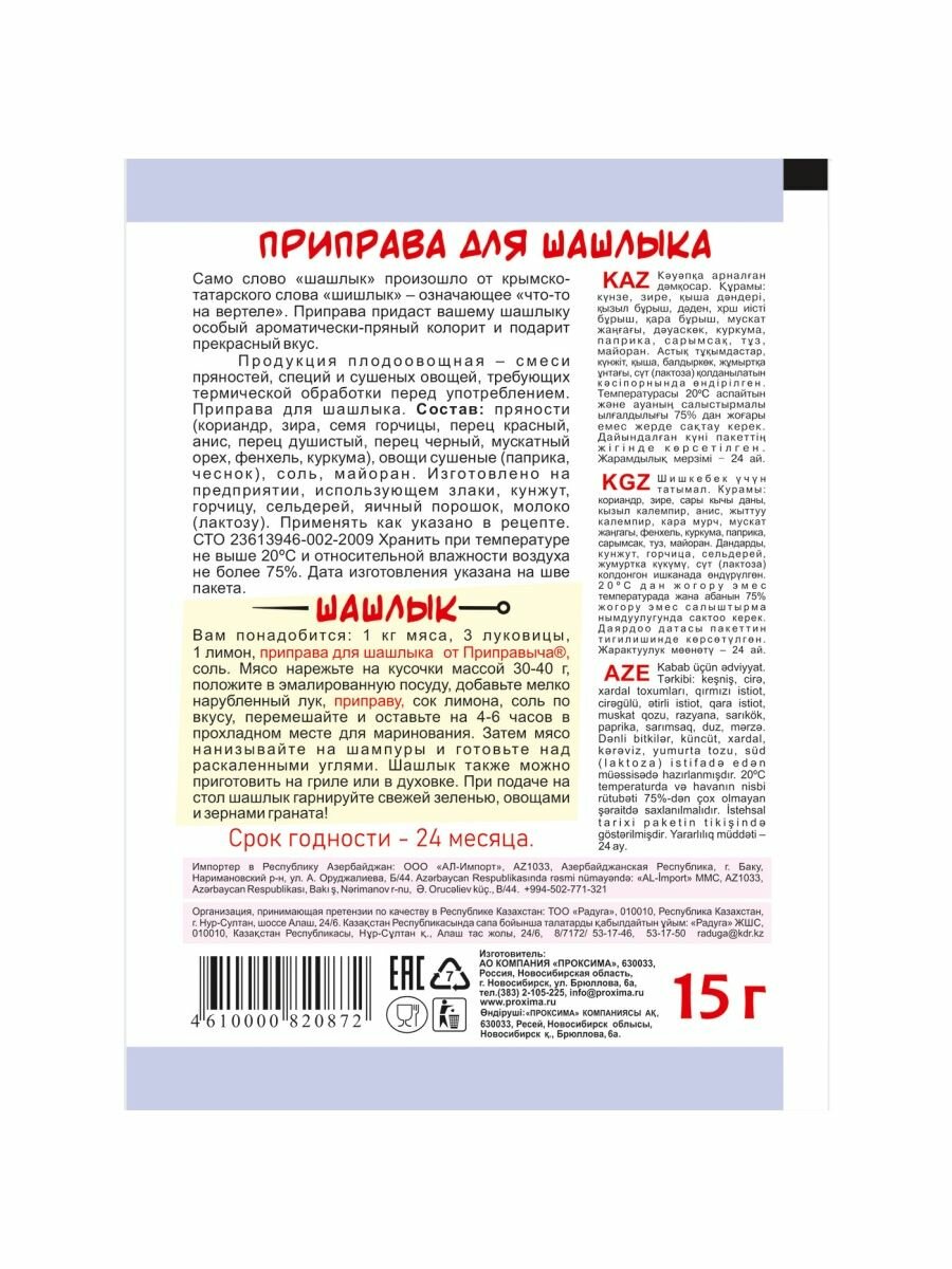 Сервис сравнения цен СкидкаГИД предлагает сравнить цены на товар «Приправа Приправыч для шашлыка 15 г»