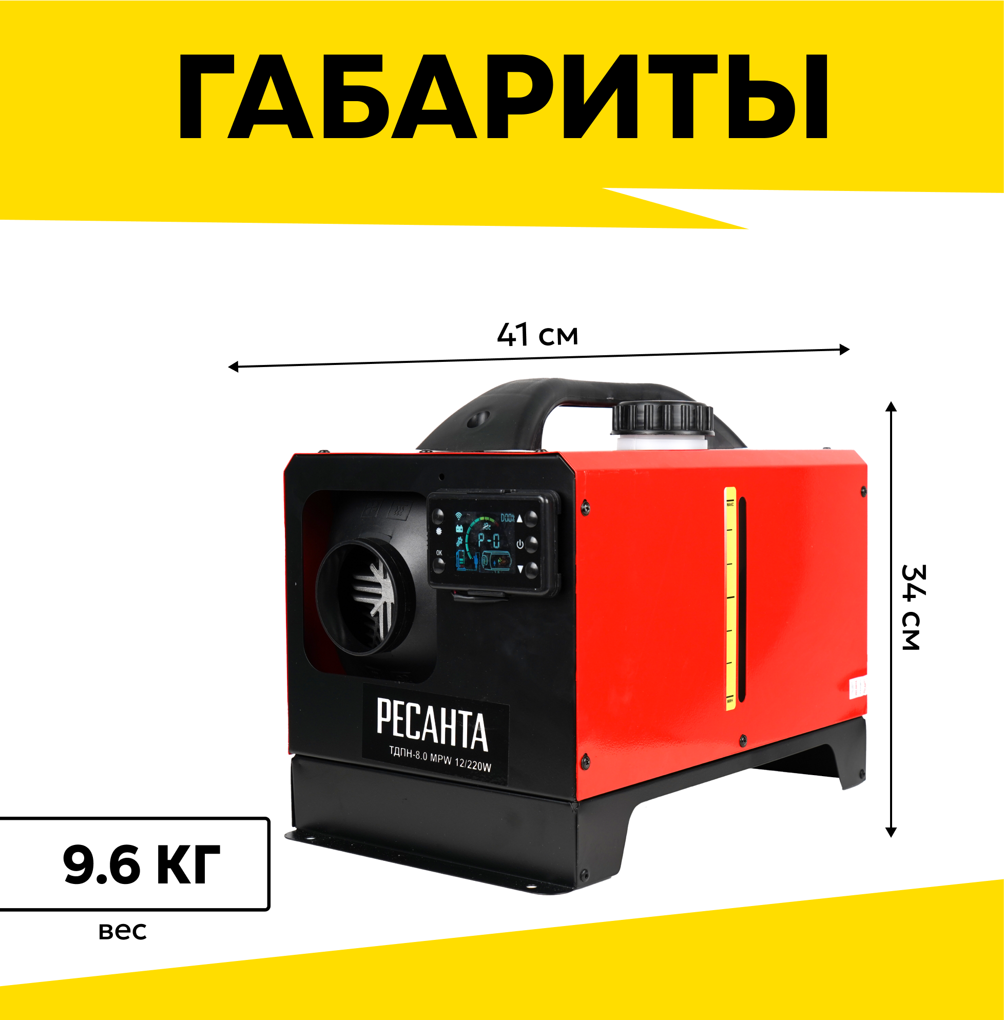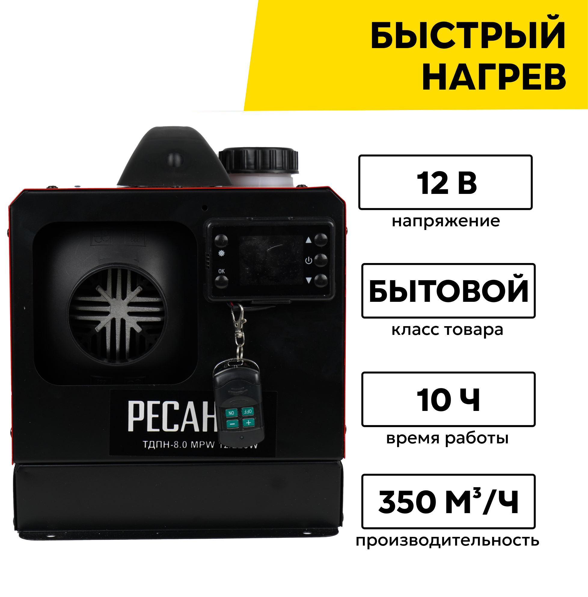 Тепловая дизельная пушка непрямого нагрева ТДПН-8000-12/220В Ресанта, оснащённая теплорегулятором и системой защиты от перегрева, является идеальным решением для обогрева складов, промышленных объектов и других помещений. Это устройство отличается простотой установки и использования, а также экономичным расходом топлива, что позволяет ему работать непрерывно до 10 часов. Благодаря наличию терморегулятора, пользователь может задать оптимальный температурный режим, который будет поддерживаться автоматически. Дизельная пушка обладает высокой производительностью (350 м³/ч) и надёжностью, что делает её незаменимым помощником там, где требуется быстрый нагрев воздуха и длительное поддержание заданной температуры. Кроме того, данная модель оснащена специальной конструкцией, которая позволяет достичь КПД, приближенного к 100%, при относительно небольших затратах. Удобная ручка для переноски и небольшой вес (всего 9,6 кг) делают использование этой модели максимально комфортным. Расход топлива - 0,5 кг/ч. Емкость топливного бака - 5 л.Преимущества Экономичность Устойчивая к механическим повреждениям Равномерное распределение теплого воздуха в помещении Высокая скорость набора температуры Для подключения требуется АКБ Имеется информативный дисплей Наличие термостата Защита от перегрева Защита от воспламенения Защита от угасания пламени Ручка для удобства транспортировки
