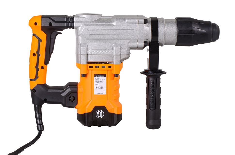 Перфоратор Вихрь П-2000к-м SDS-Max - мощный и надежный инструмент для профессионального использования.Перфоратор оснащен мощным двигателем на 2000 Вт и силой удара 13 Дж, что позволяет ему справляться с самыми сложными задачами. Максимальная частота ударов составляет 3750 уд/мин, а максимальная частота оборотов холостого хода - 600 об/мин.Особенностью конструкции перфоратора является антивибрационная система, которая снижает вибрацию и повышает комфорт работы. Также в перфораторе предусмотрена блокировка кнопки включения и дополнительная рукоятка для удобства использования.Перфоратор Вихрь П-2000к-м SDS-Max имеет защиту от перегрузок, что обеспечивает долгий срок службы и надежность инструмента. В комплекте с перфоратором идут кейс, дополнительная рукоятка, долото и ограничитель глубины сверления.Перфоратор имеет вертикальное расположение двигателя, что делает его более компактным и удобным для работы в труднодоступных местах.Перфоратор выполнен в ярком желтом цвете, что делает его заметным на рабочем месте и облегчает поиск инструмента.В комплекте с перфоратором идет пластмассовый кейс для удобства хранения и транспортировки инструмента.Выбирая перфоратор Вихрь П-2000к-м SDS-Max, вы получаете надежный и мощный инструмент для профессионального использования.