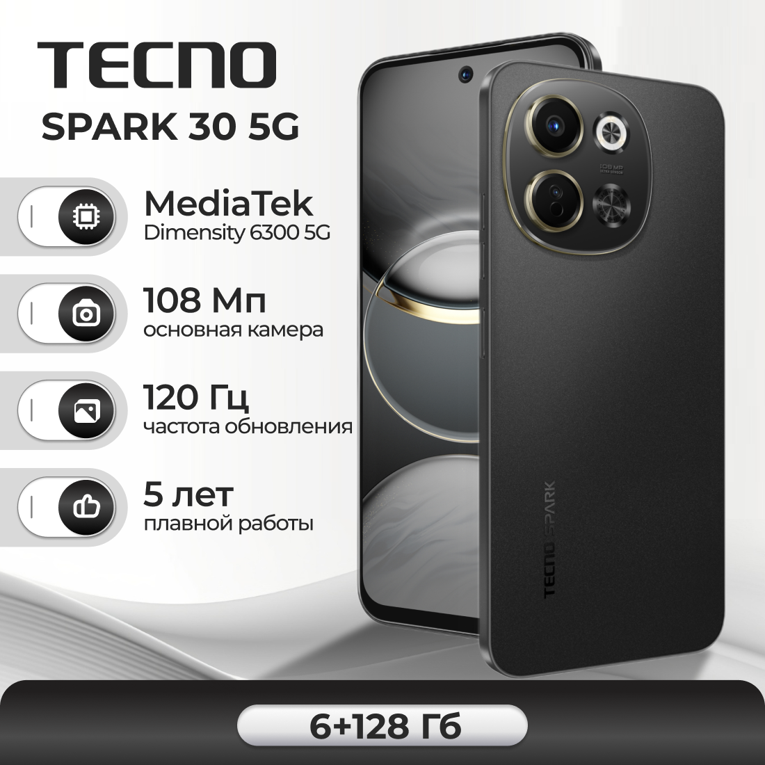 Смартфон TECNO SPARK 30 5G 6/128 ГБ чёрный
