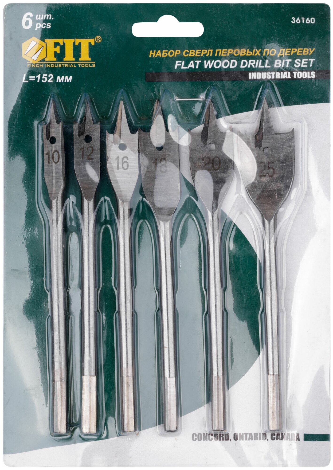 Набор с перовых сверл FIT используется с аккумуляторными и электродрелями для просверливания отверстий в заготовках из таких материалов, как фанера, ДСП и дерево твердой и мягкой породы. Материал сверла инструментальная сталь повышенной прочности, которая идеально подходит для изготовления сверл, сохраняя их режущие качества и долгий срок службы. С помощью перовых сверл достигается точная обработка отверстий за минимальное время и уменьшается возможность деформации заготовки при сверлении.