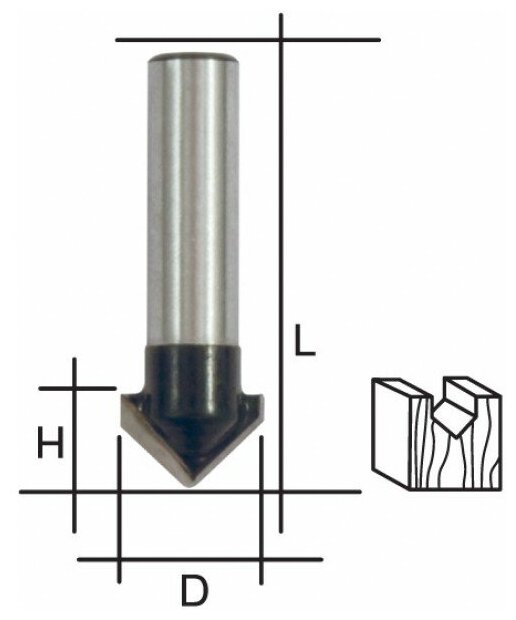 Используется для работ по дереву. Для фрезерования пазов. Угол при вершине 90°. Цилиндрический хвостовик 8 мм. Материал: инструментальная сталь с твердосплавными режущими вставками. Упаковка: двойной блистер.