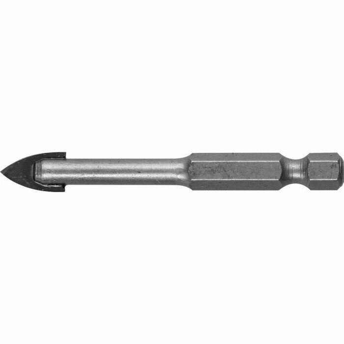 Сверло "мастер" Зубр используется для сверления отверстий в кафеле, керамике и стекле с помощью электродрели. Оснастка имеет шестигранный хвостовик для надежной фиксации в патроне, а также твердосплавные пластины ВК6 с отшлифованными режущими кромками для эффективной работы. Сверло имеет два режущих лезвия. Благодаря специальной проточке хвостовика 1/4 дюйма возможно использование с быстросъёмным адаптером. Рекомендуется охлаждение водой.