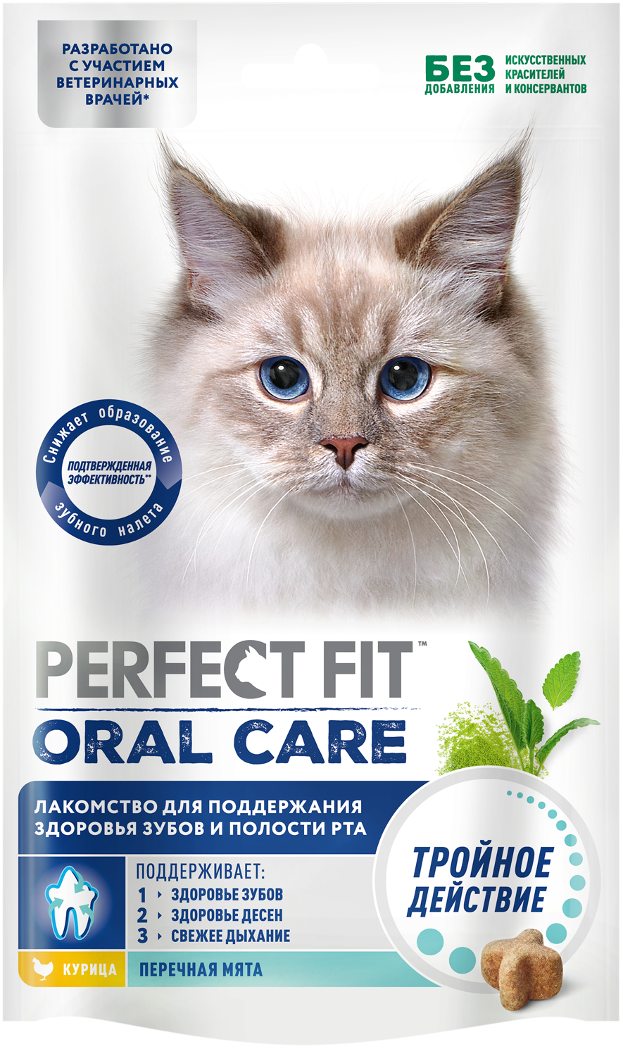 Perfect Fit Oral Care Лакомство для кошек с курицей и мятой 50г