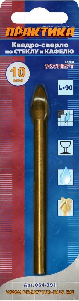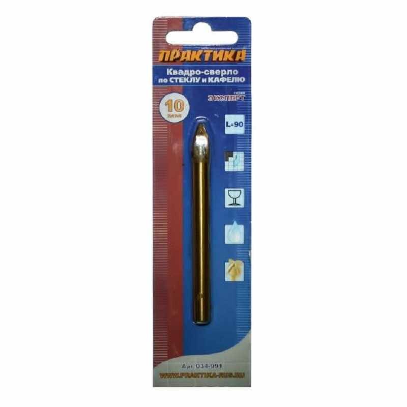Сверло по стеклу ПРАКТИКА 034-991 10мм Квадро по стеклу и кафелю