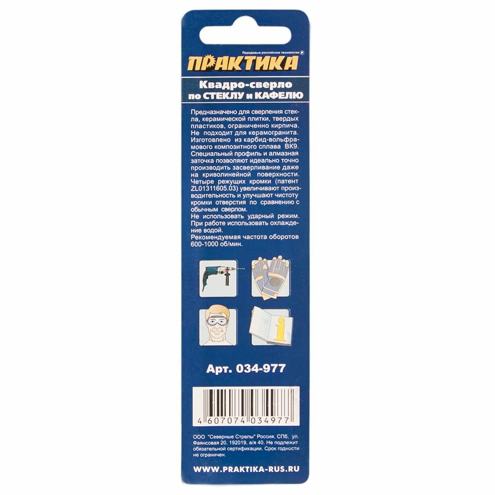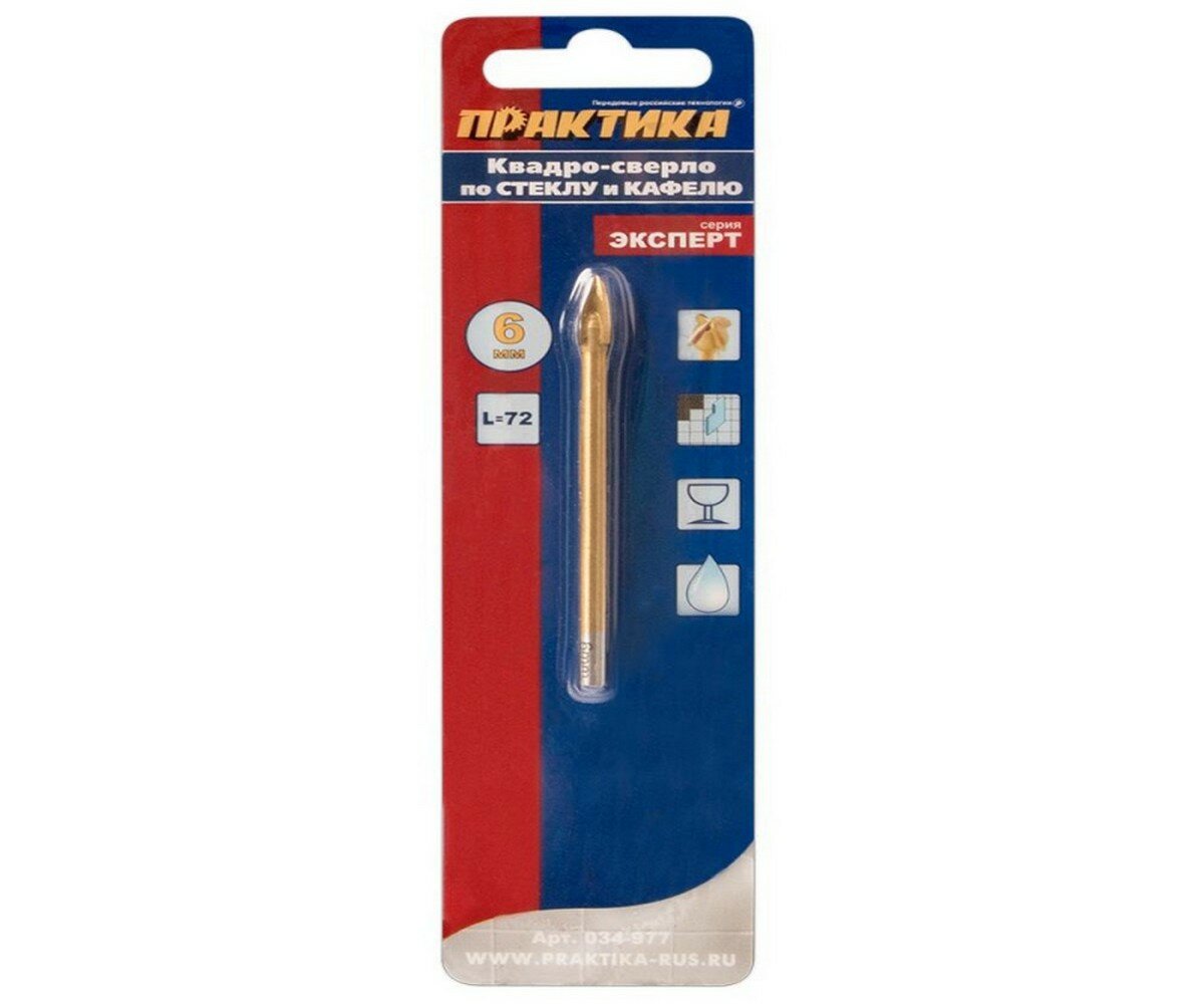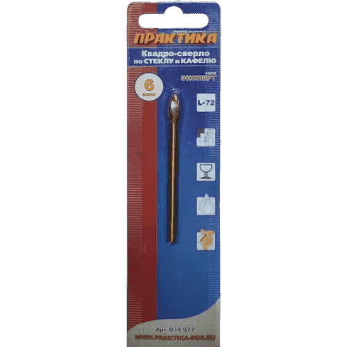 Сверло по стеклу ПРАКТИКА 034-977 6мм Квадро по стеклу и кафелю