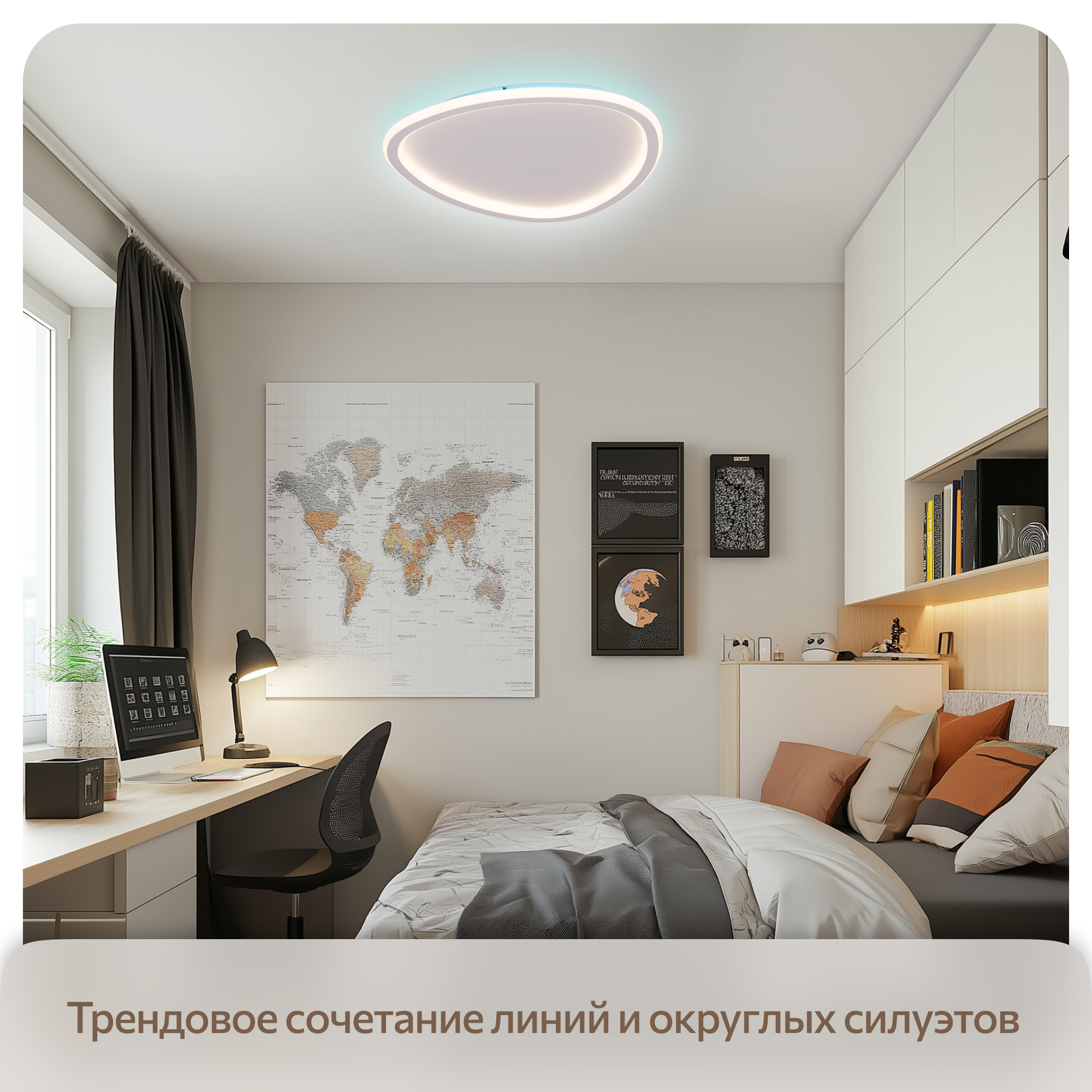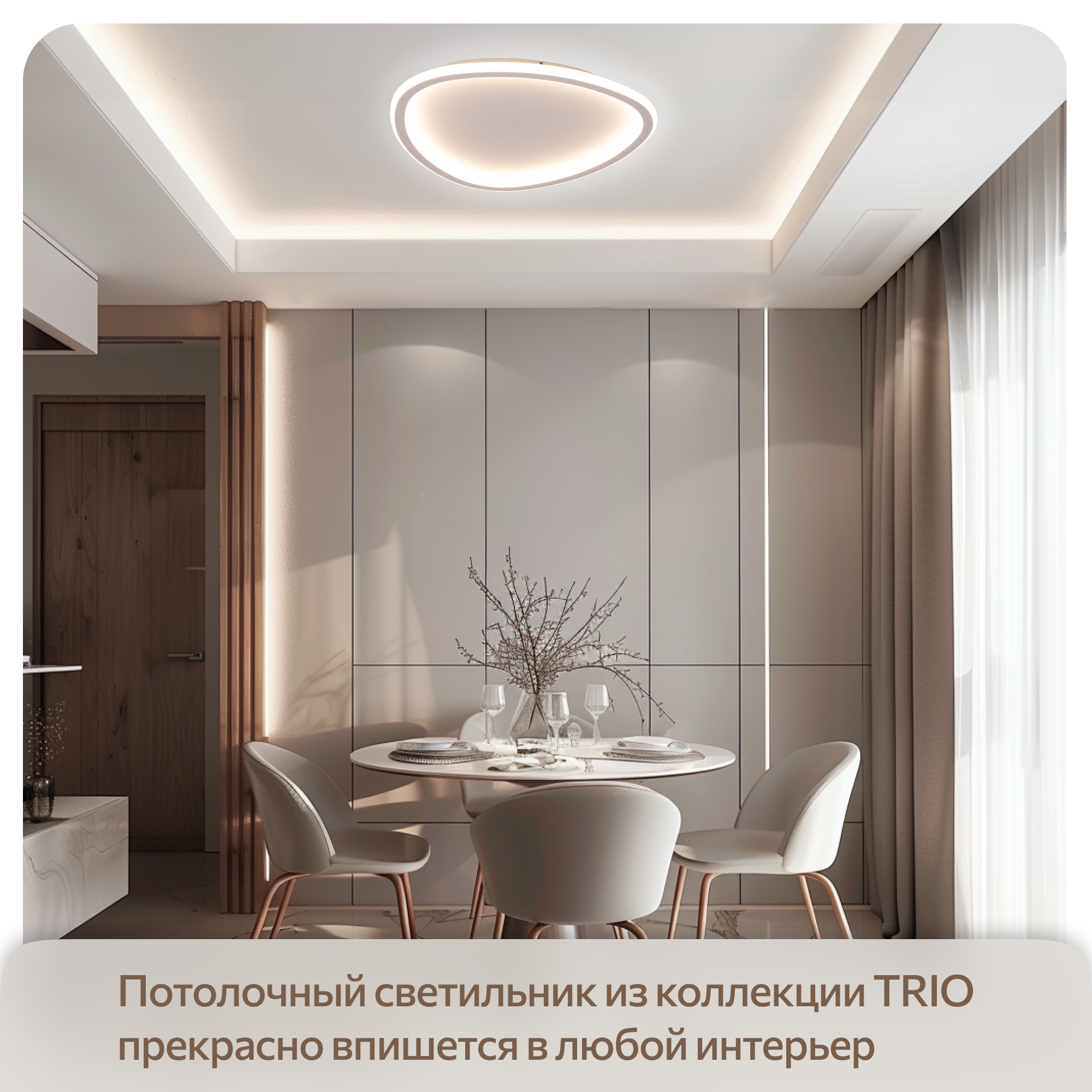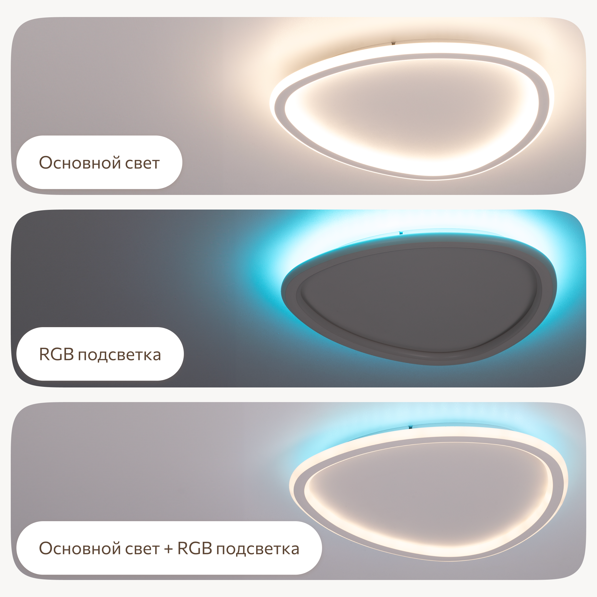 Светодиодная потолочная люстра Citilux ТRIO CL215B240E выполнена в современном стиле. Плоская форма и мягкие контуры делают её идеальным решением для модных интерьеров, будь то гостиная, спальня или любое другое помещение. Элегантный и минималистичный дизайн модели гармонично сочетается с высокими технологиями, предлагая вам не только основной свет, но и возможность создать уникальную атмосферу благодаря цветной RGB подсветке основания.