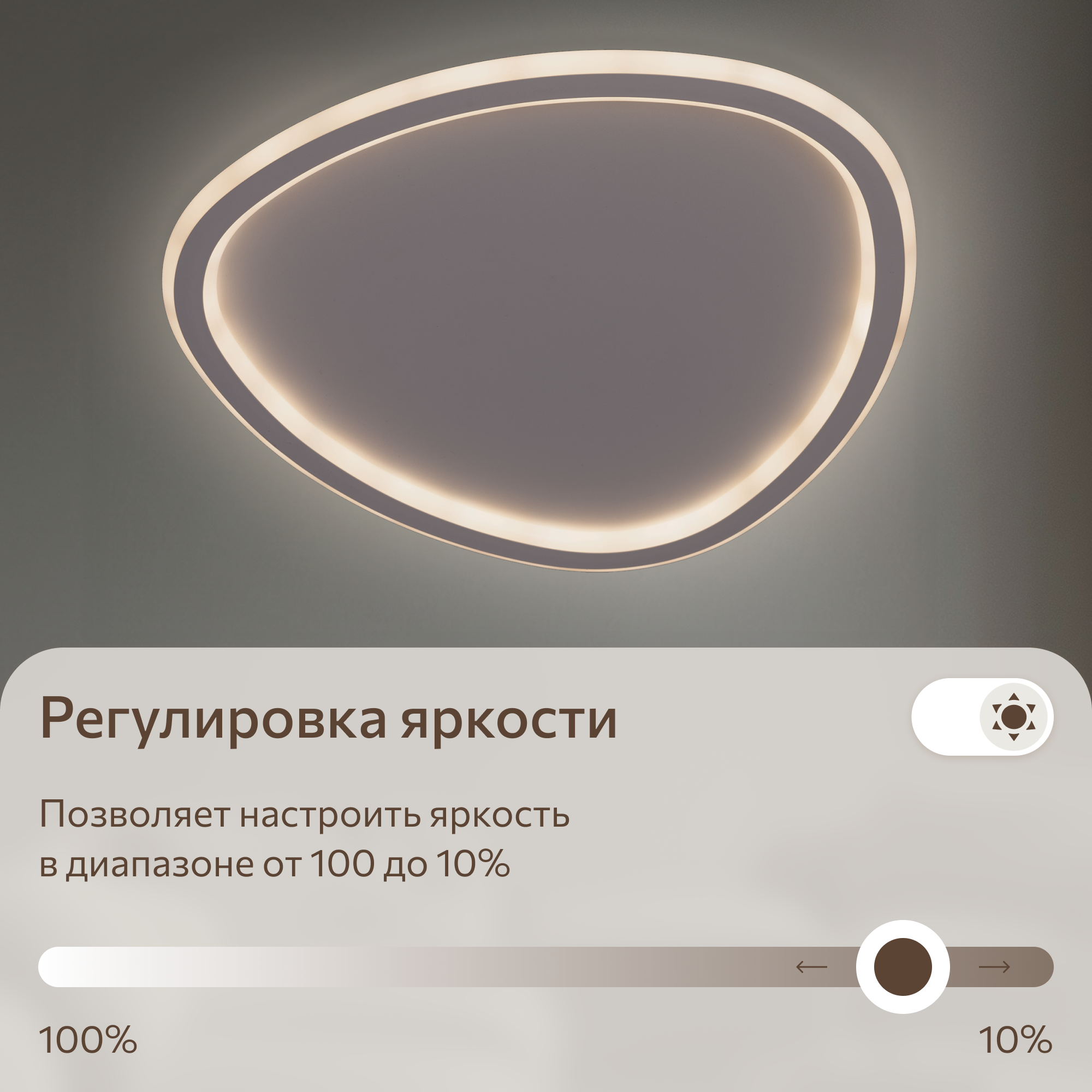 С помощью пульта доступно: плавная регулировка яркости 10 - 100%; управление цветовой температурой 3000К - 5500К, позволяет настроить любые оттенки теплого, нейтрального и холодного света. Предусмотрены функции отсроченного выключения и ночного режима, 4 настраиваемых режима памяти, которые можно активировать с помощью настенного выключателя, а также различные режимы работы RGB подсветки. Радиопульт ДУ в комплекте. Питание пульта - 2 батарейки формата ААА, напряжением 1,5V (не входят в комплект).