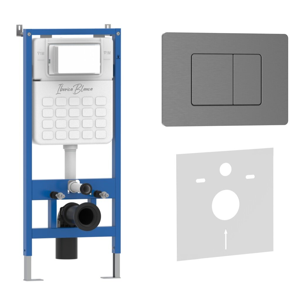 Комплект 2 в 1 инсталляция+клавиша смыва вороненая сталь IB.B011.008.000 Iberica Blanca IB001.118