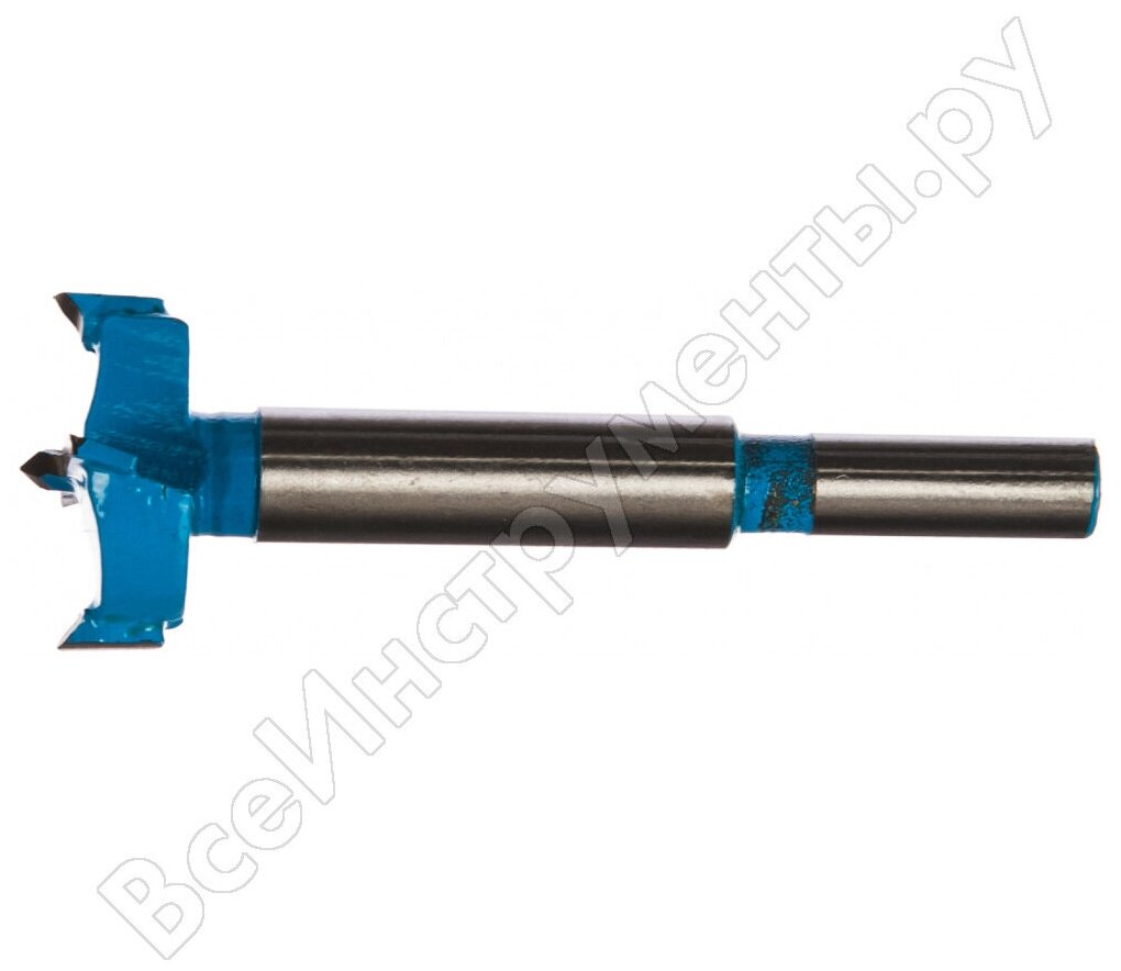 Серия "Эксперт". Сверло Форстнера (Forstner) с твердосплавными напайками (твердость FIRC 90-93) предназначено для сверления отверстий в мягкой и твердой древесине, древесине, покрытой шпоном; ДСП, ламинированном ДСП. Подходит для точного сверления глухих отверстий, например под мебельные петли. Оснащено боковыми режущими кромками и центрирующим острием. Обеспечивает высокое качество реза без сколов и хороший отвод опилок. Отличается точной геометрией реза и высокой производительностью. Ресурс многократно превосходит обычное сверло. Может использоваться со всеми типами дрелей. Рекомендуемое количество оборотов 400 - 600 об/мин.