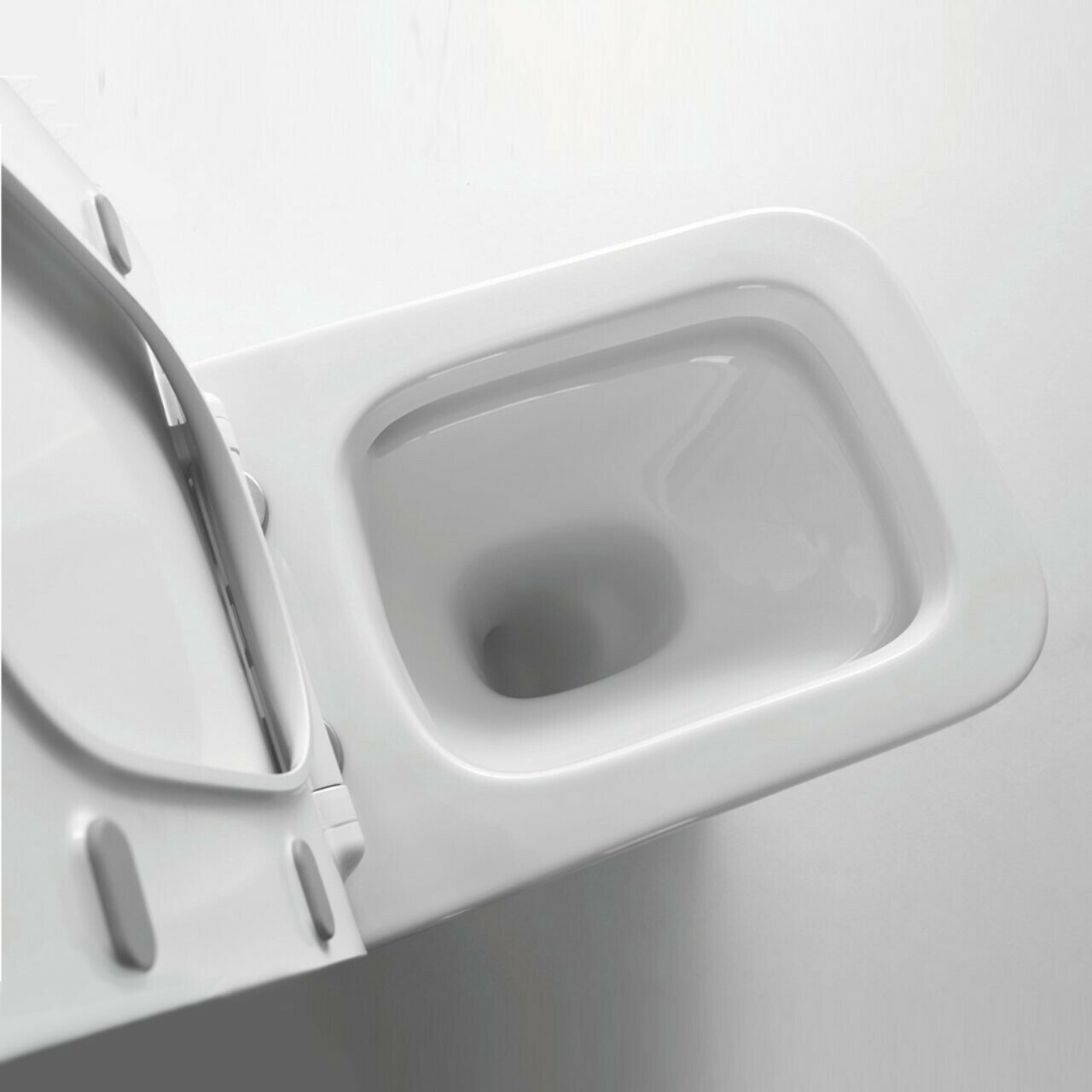 - Тонкое сиденье из дюропласта с плавным опусканием крышки (soft-close - микролифт), быстросъемное.