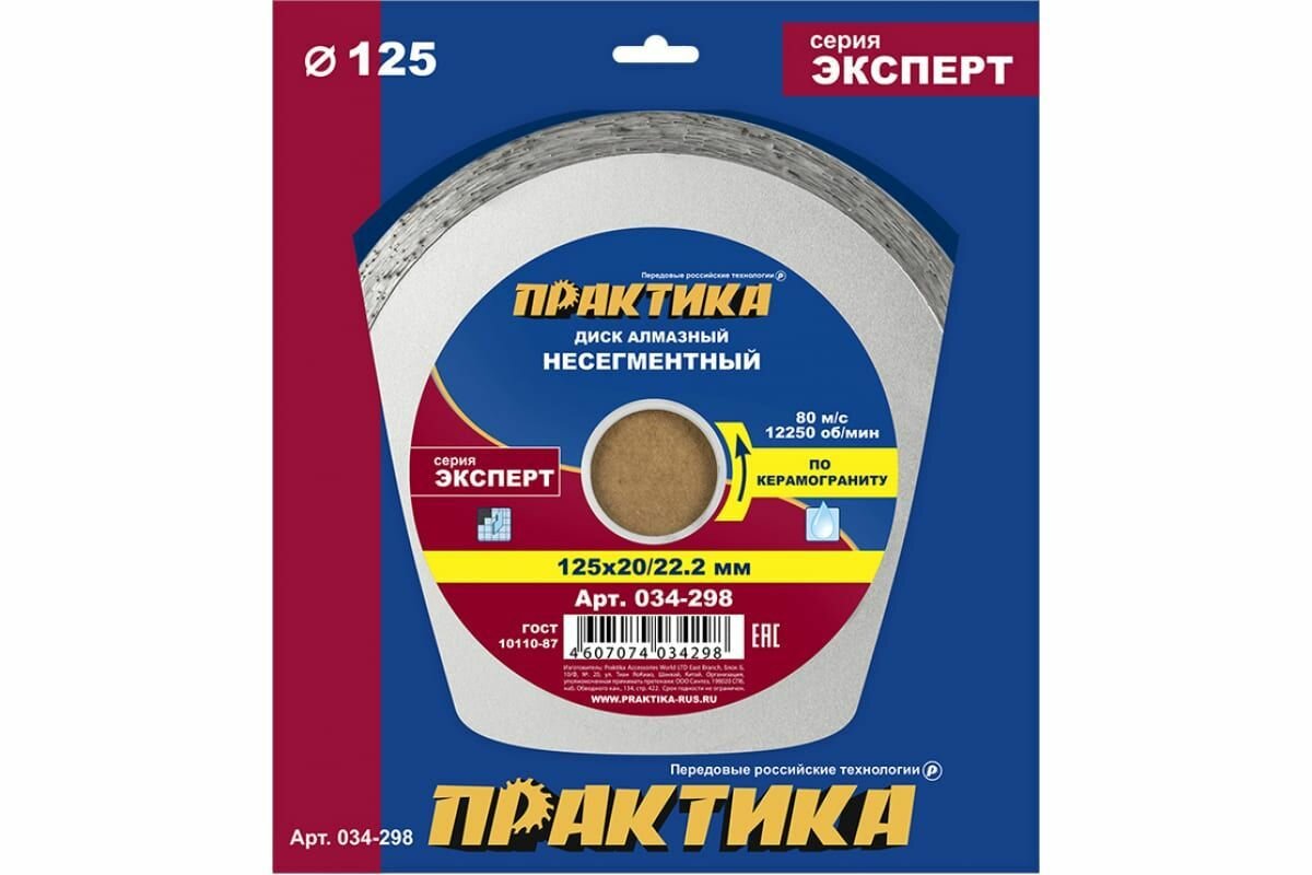 Алмазный диск ПРАКТИКА 034-298 da-125-22sup ПО КЕРАМОГРАНИТУ