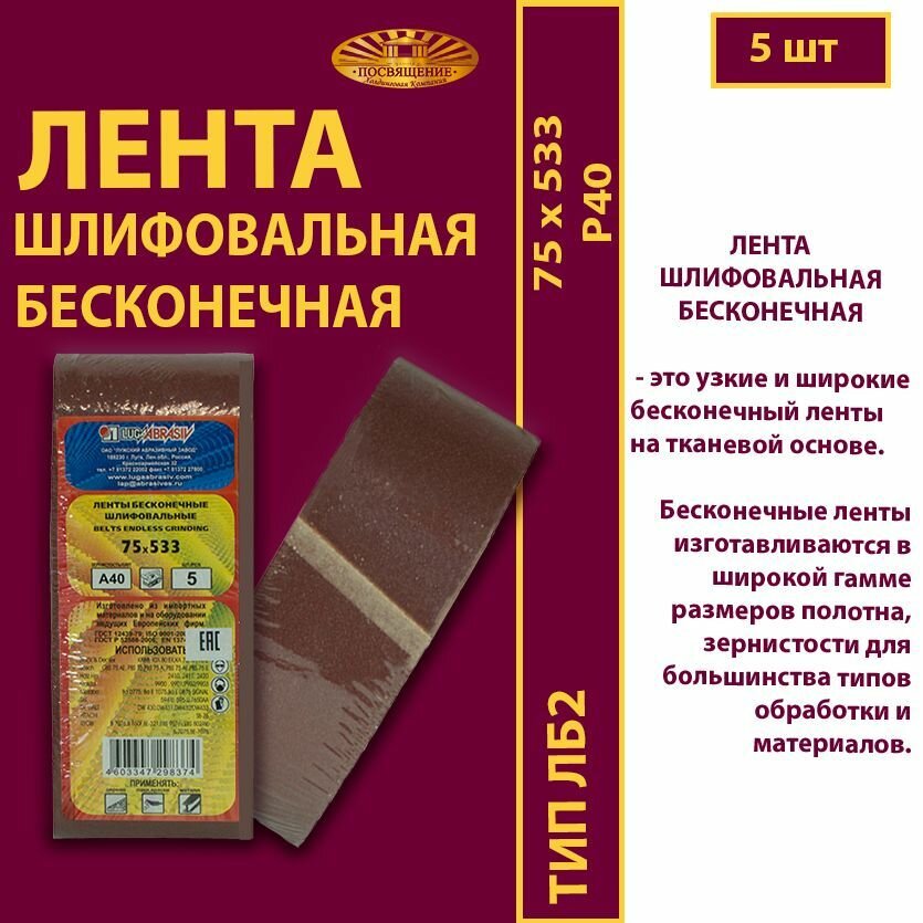 Лента шлифовальная бесконечная ЛУГА-АБРАЗИВ 75 Х 533 Р 40 (№40)