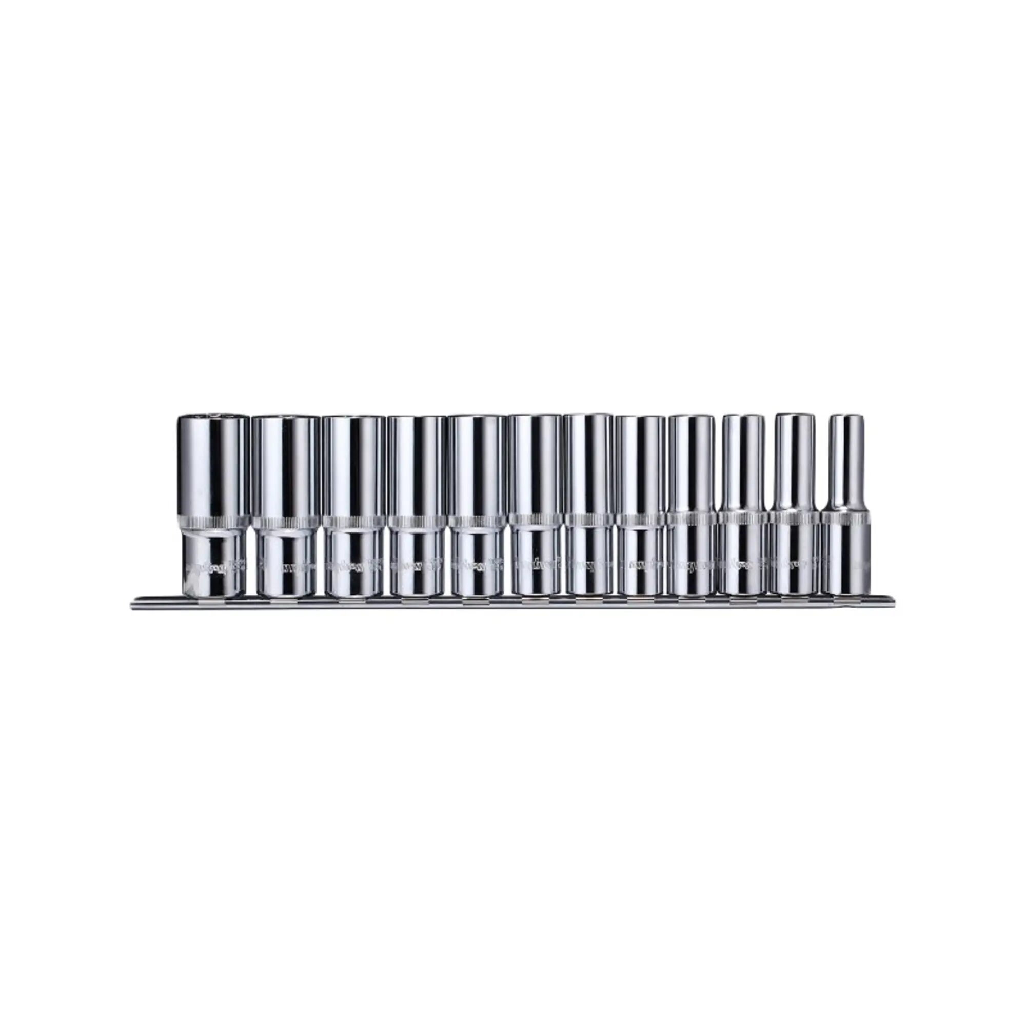 Набор торцевых глубоких головок 1/2"DR Ombra включает 12 предметов. Все инструменты изготовлены из специальной легированной стали, что определяет высокий ресурс работы. Торцевые головки имеют двенадцатигранный профиль. Расположены на держателе, что облегчает транспортировку комплекта.