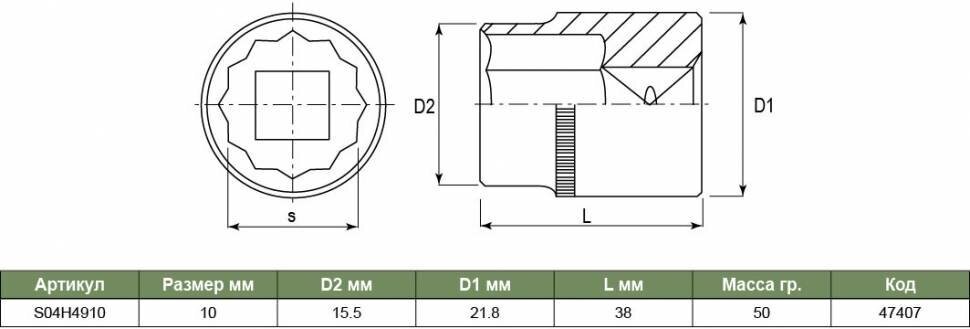 Торцевая головка Jonnesway S04h4910