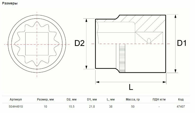 | Размер головки | 10 |