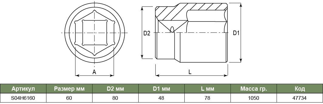 Головка Jonnesway S04h6160 (размер: 60;60)