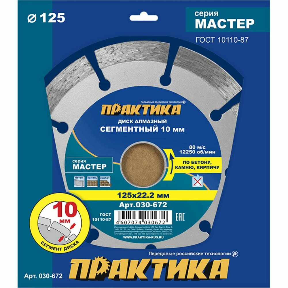 Алмазный диск ПРАКТИКА 030-672 da-125-22s 125 Х 22 сегментный