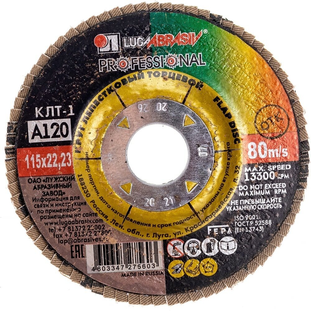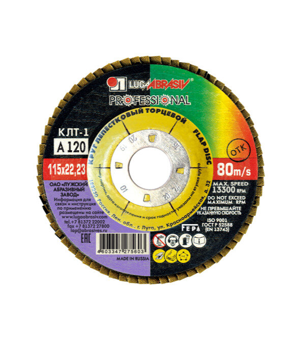 Плоский лепестковый круг Luga-Abrasiv ЛУГА-АБРАЗИВ КЛТ1 115 Х 22 Р120 (№12)