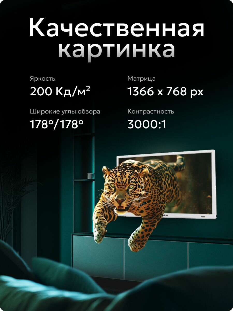 С помощью этого телевизора вы сможете наслаждаться впечатляющей четкостью изображения и яркими деталями. Он предлагает оптимальное сочетание цены и качества, что делает его отличным выбором для тех, кто ценит комфорт и эстетику во время просмотра контента. Простота настройки и управления обеспечивает легкий доступ к любимым каналам и приложениям.
