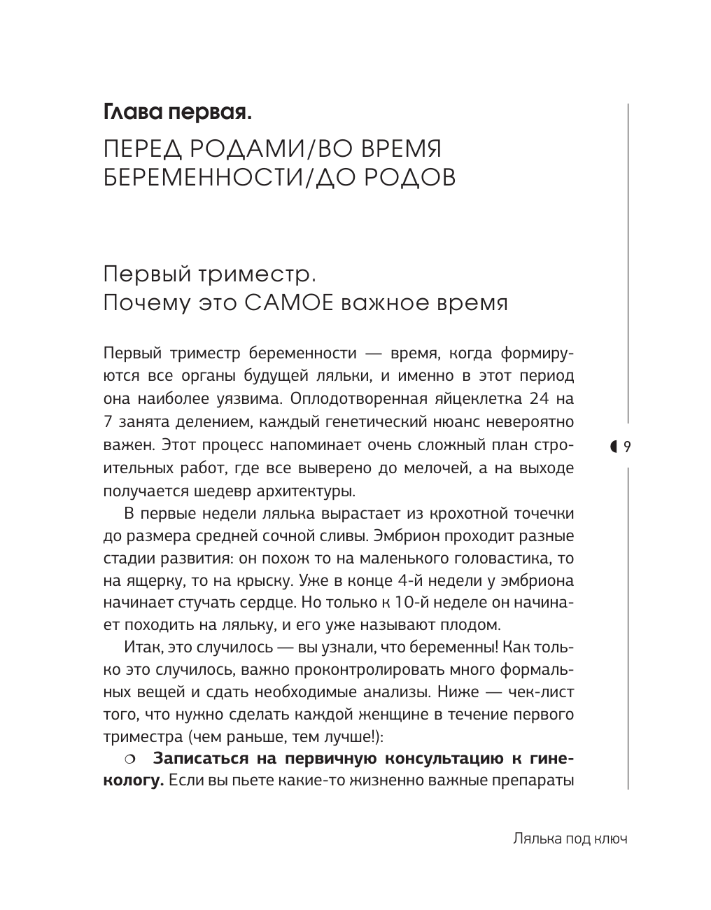 «Лялька под ключ» — не просто название: прочитав эту книгу, вы будете готовы ко всем этапам беременности и материнства, зная детали и нюансы.