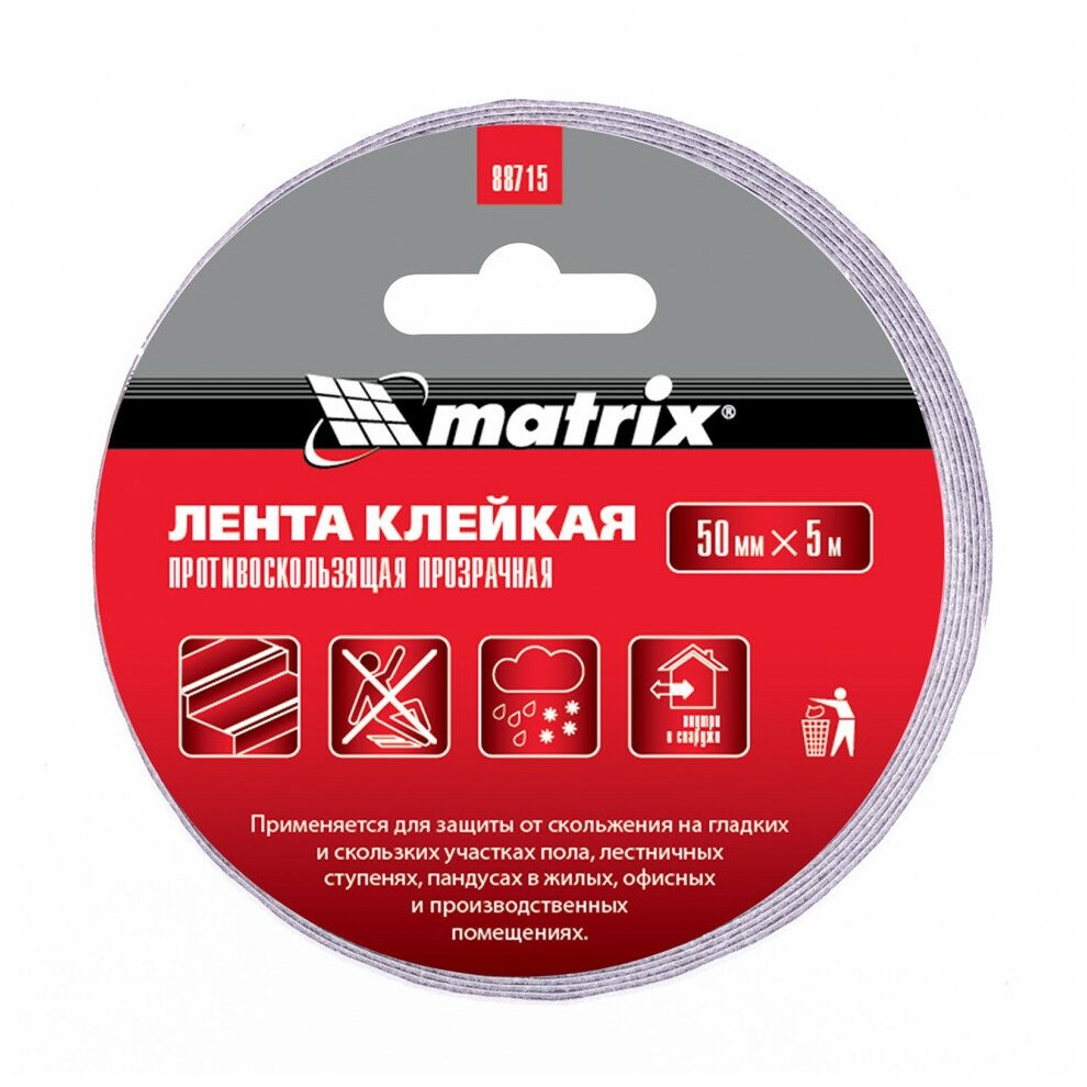 Лента клейкая Matrix 88715 противоскользящая прозрачная 50 мм х 5м