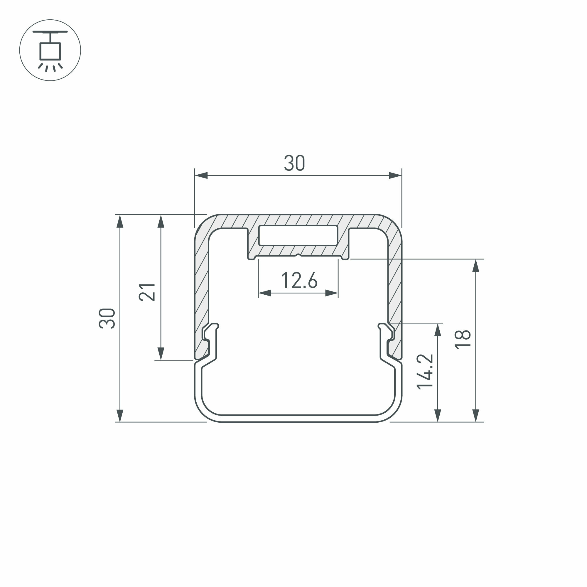 Комплект профиля с экраном и заглушками. Подвесной профиль со скругленными углами и объемным матовыми экраном из поликарбоната идеально подходит для основного освещения и создания дизайнерских светильников. Цвет - черный RAL9004 (порошковая окраска). Габаритные размеры (L×W×H): 2000x30x30 мм. Ширина площадки для ленты 12,6 мм. В комплекте: профиль - 2 м, экран - 2 м, заглушка глухая - 2 шт. Остальные аксессуары приобретаются дополнительно. Цена за комплект.