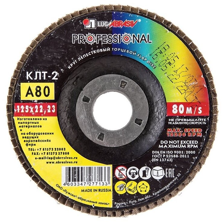 Круг лепестковый торцевой Луга предназначен для очищения малодоступных мест, торцевого и плоского шлифования изделий из металла, дерева, пластмассы, зачистки сварных швов и заусенцев, снятия ржавчины и т.д.